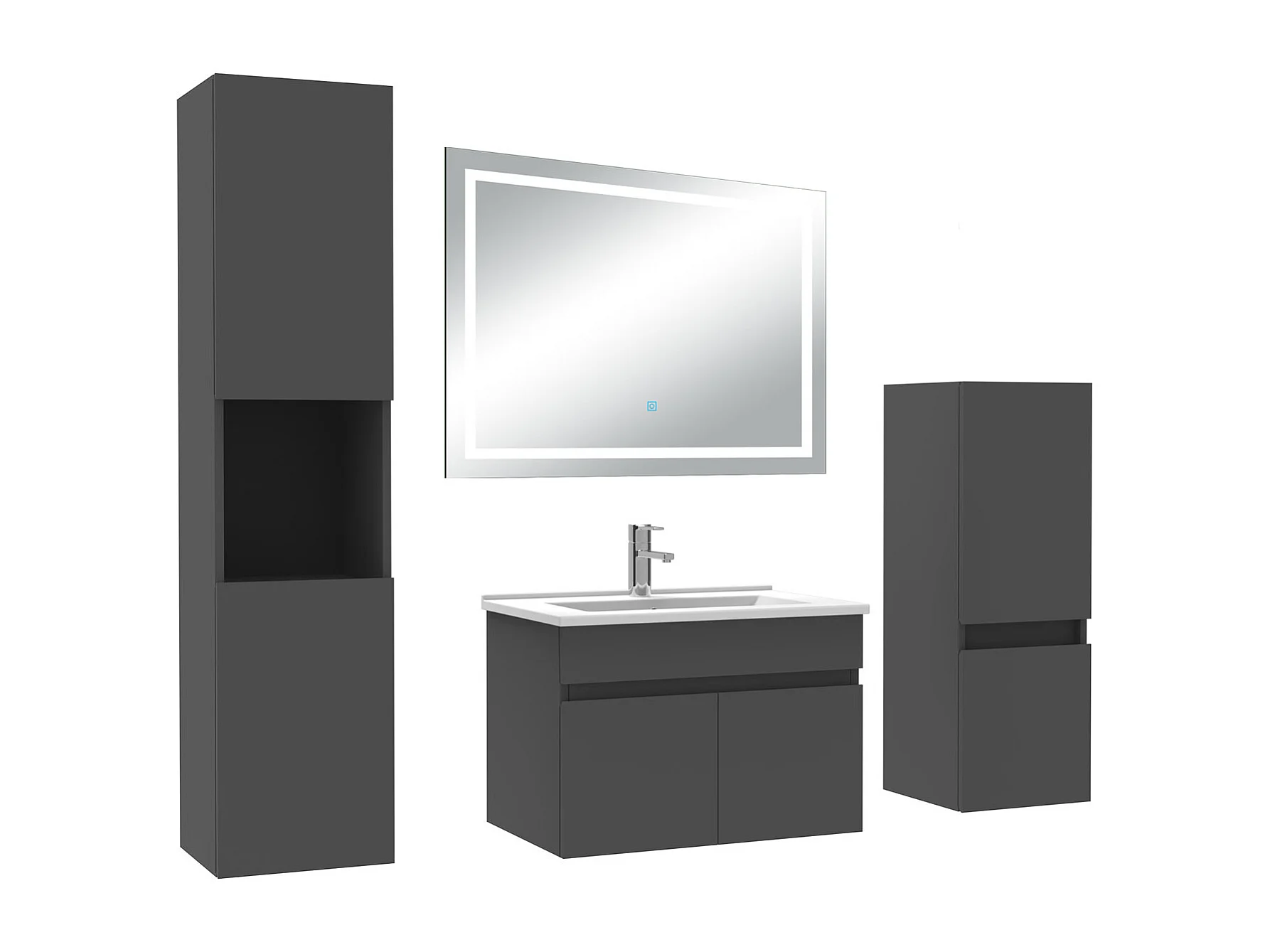 Ensemble meuble salle de Bain 60cm avec colonne + miroir mural lumineux 3 couleurs Anthracite