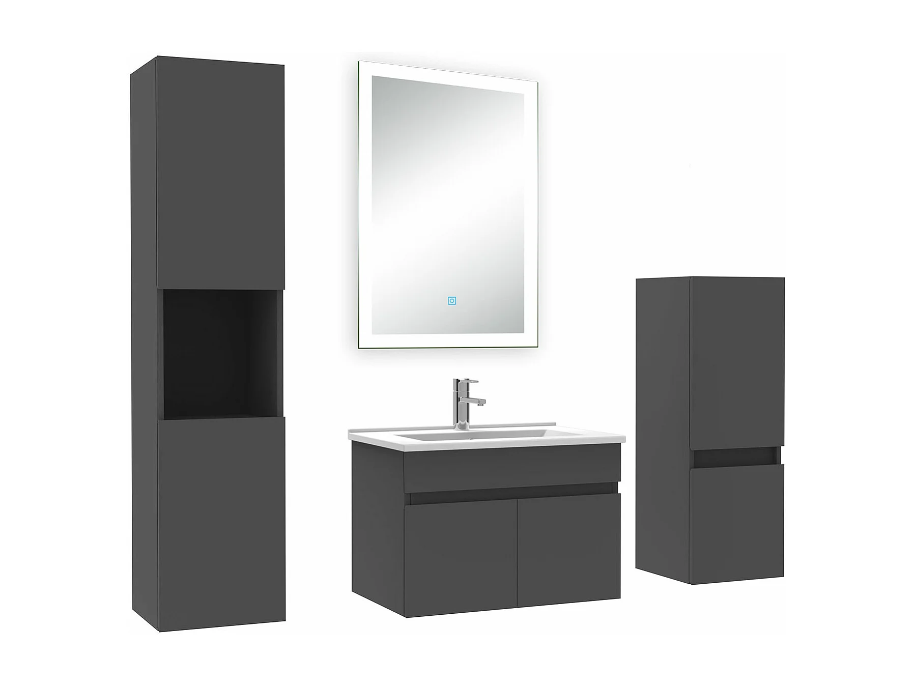 Ensemble meuble Salle de Bain 60cm avec simple vasque + colonne + miroir lumineux dimmable anthracite