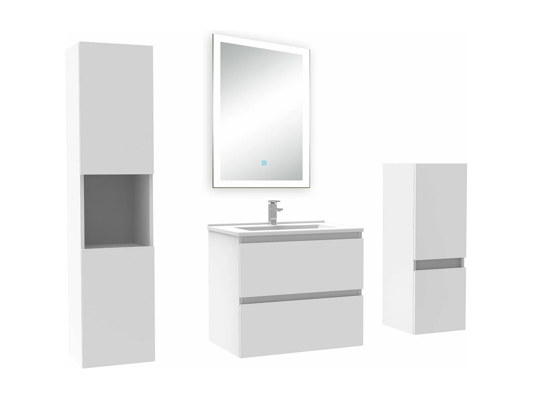 Ensemble meuble Salle de Bain 60cm avec simple vasque et colonne et miroir lumineux dimmable blanc