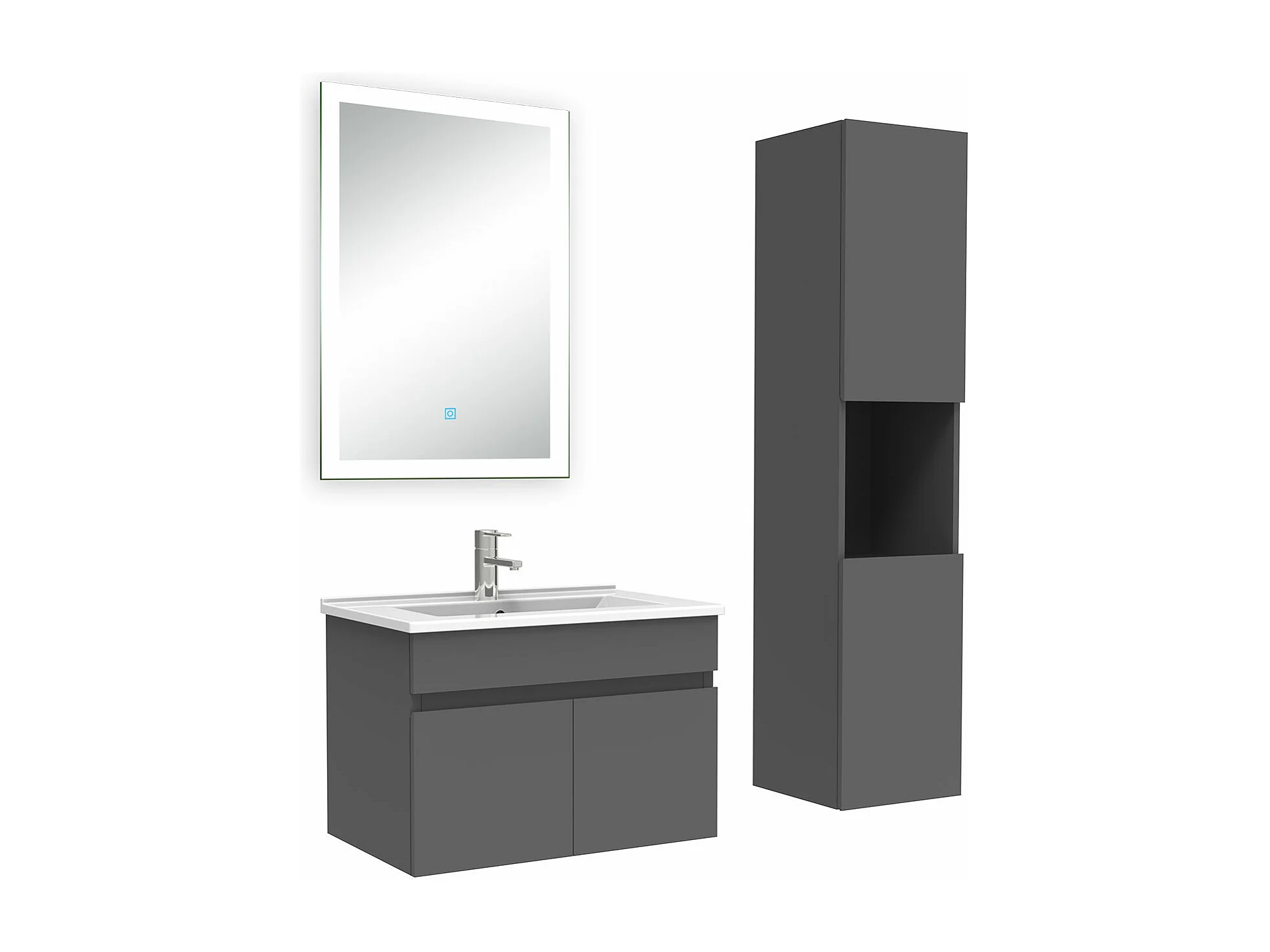 Ensemble meuble Salle de Bain 60cm avec vasque + colonne + miroir lumineux dimmable anthracite
