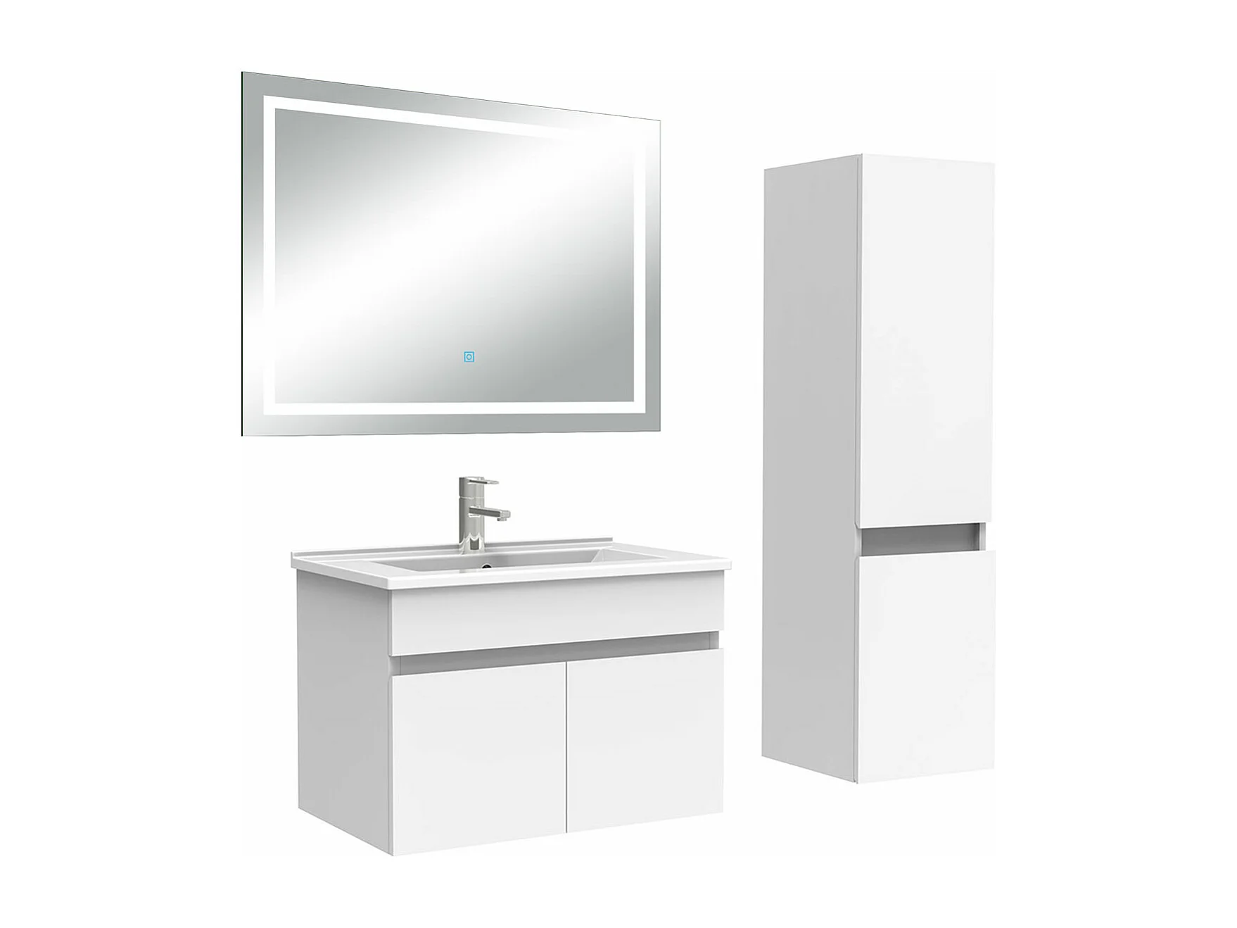 Ensemble meuble salle de Bain 60cm simple vasque avec colonne + miroir 3 couleurs blanc