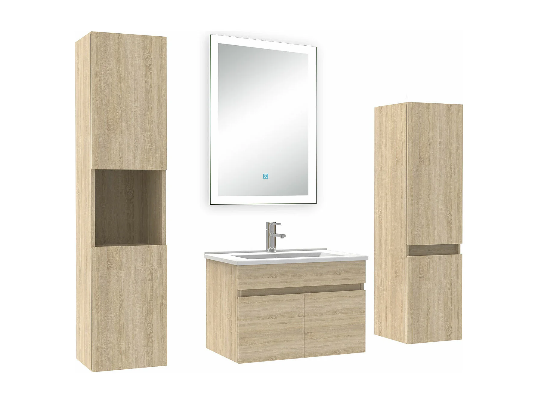 Ensemble meuble Salle de Bain 60cm simple vasque avec colonne + miroir lumineux dimmable chêne wotan