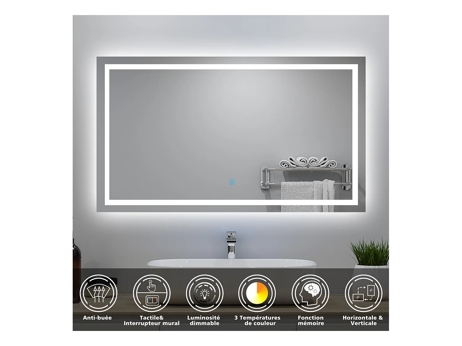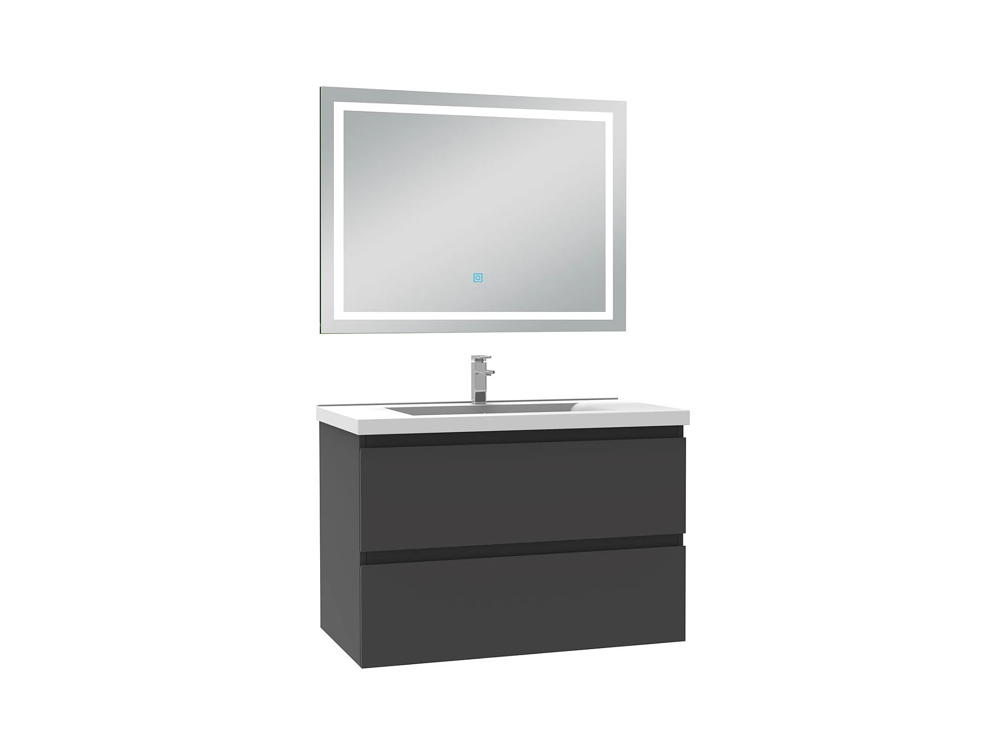 Ensemble meuble Salle de Bain 80cm Anthracite simple vasque et miroir lumineux 3 couleurs et dimmable