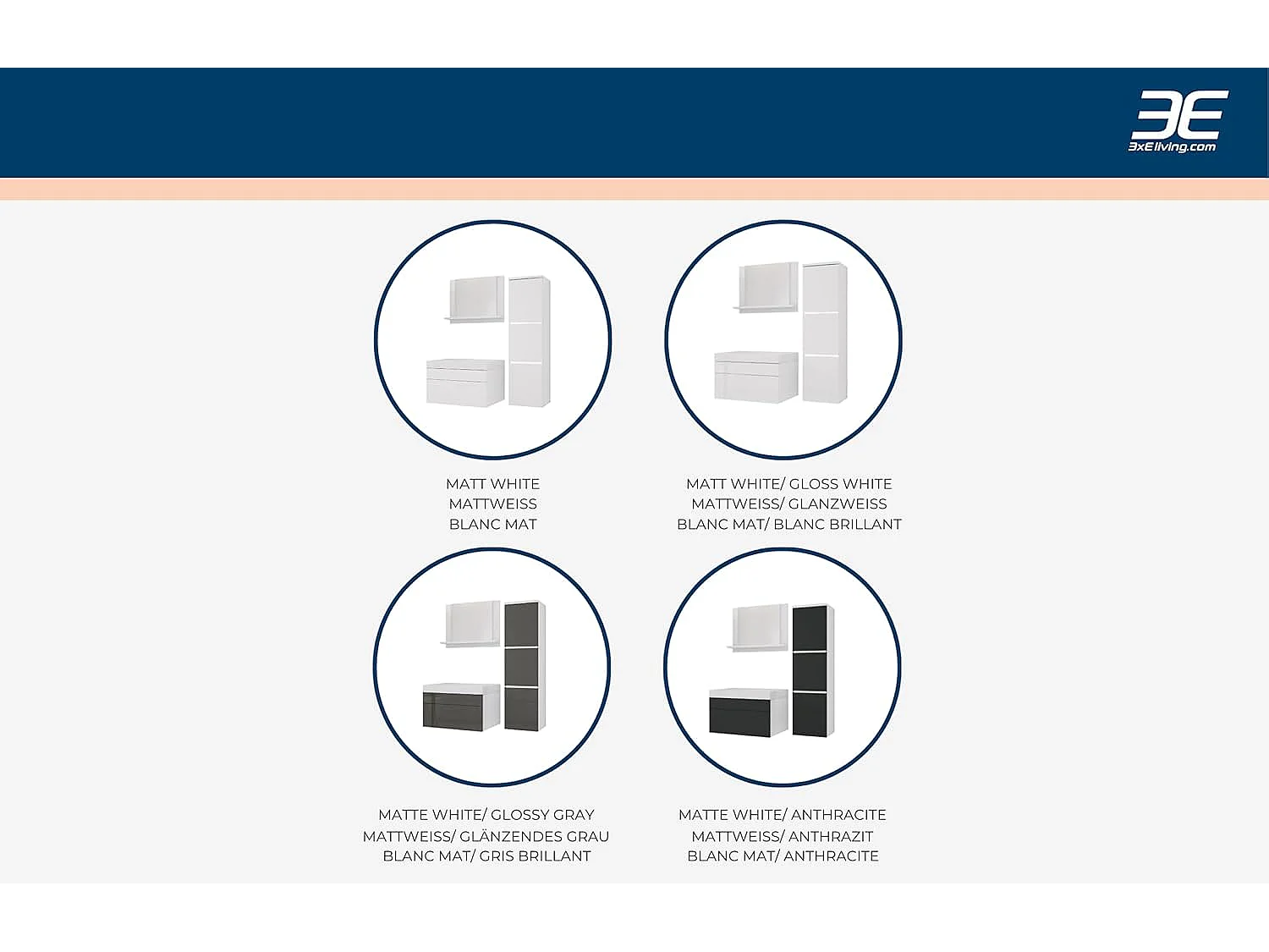 Ensemble meuble salle de bain, Blanc Mat, Gris Brillant, 90 x 110 cm