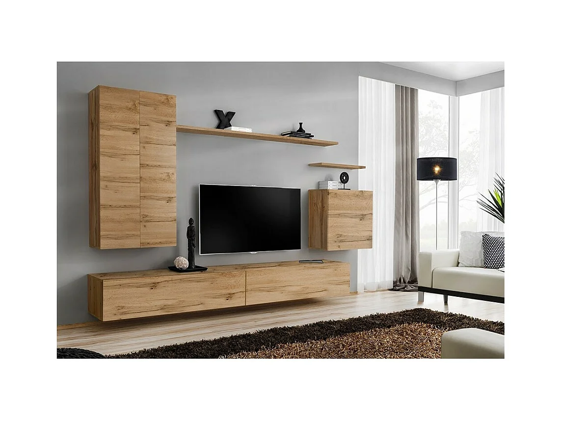 Ensemble meuble salon collection SWITCH II design, coloris chêne Wotan.
