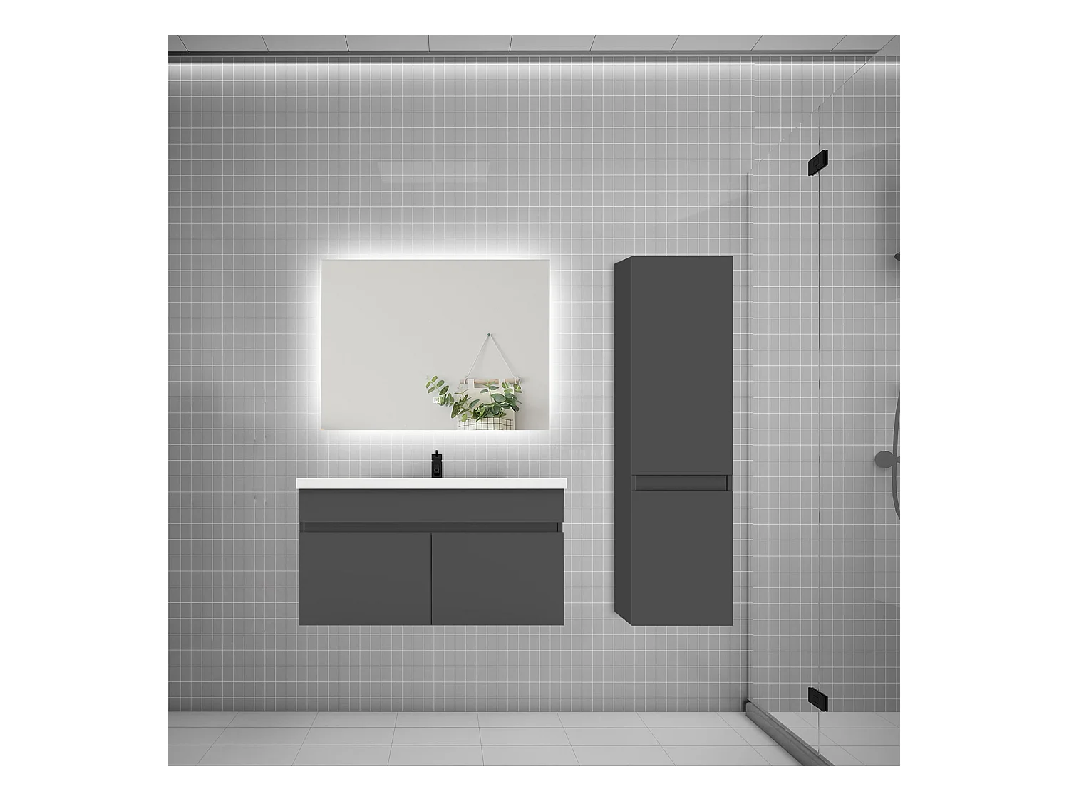 Ensemble meuble simple vasque 80cm lavabo + colonne + miroir,anthracite