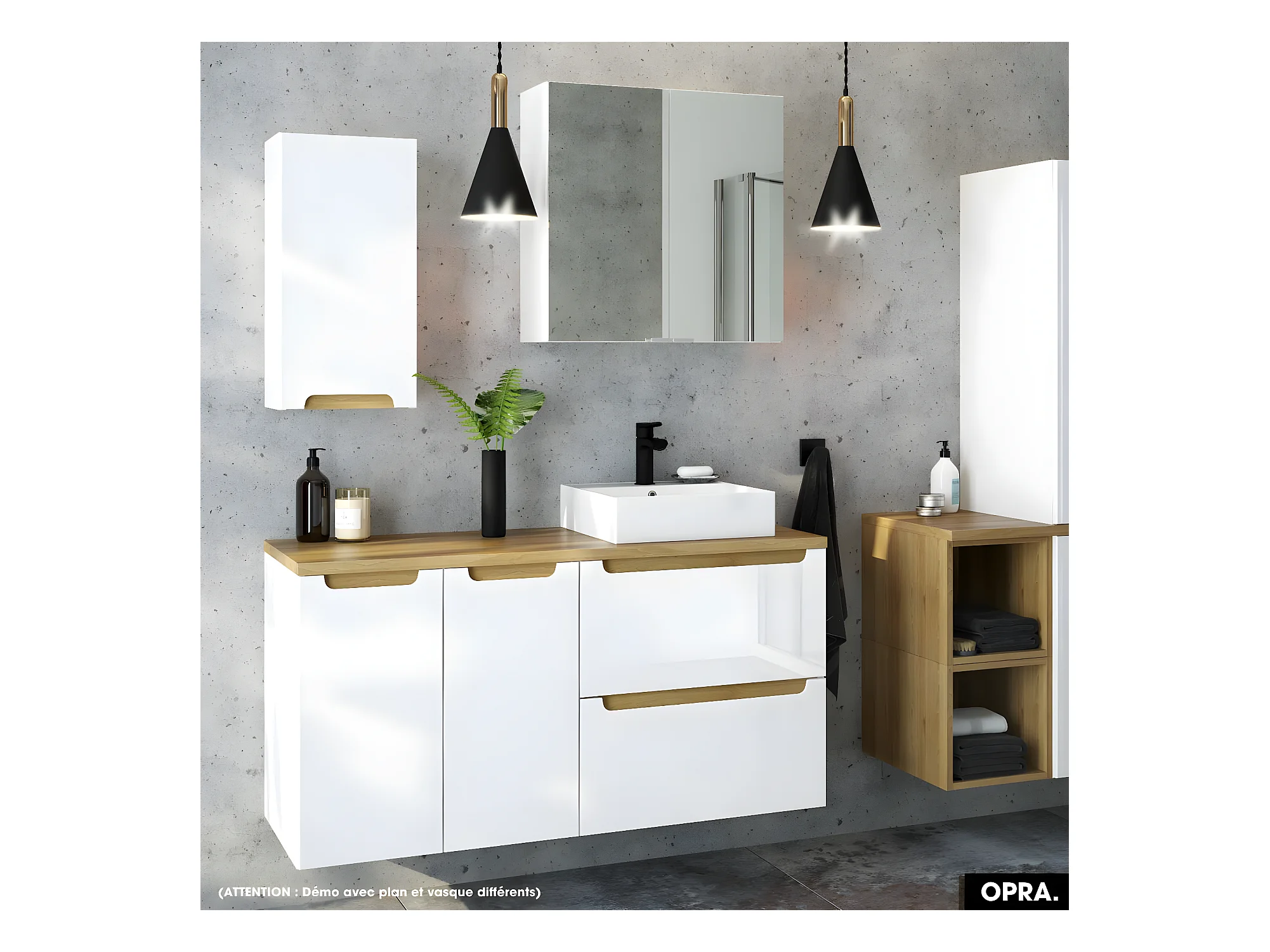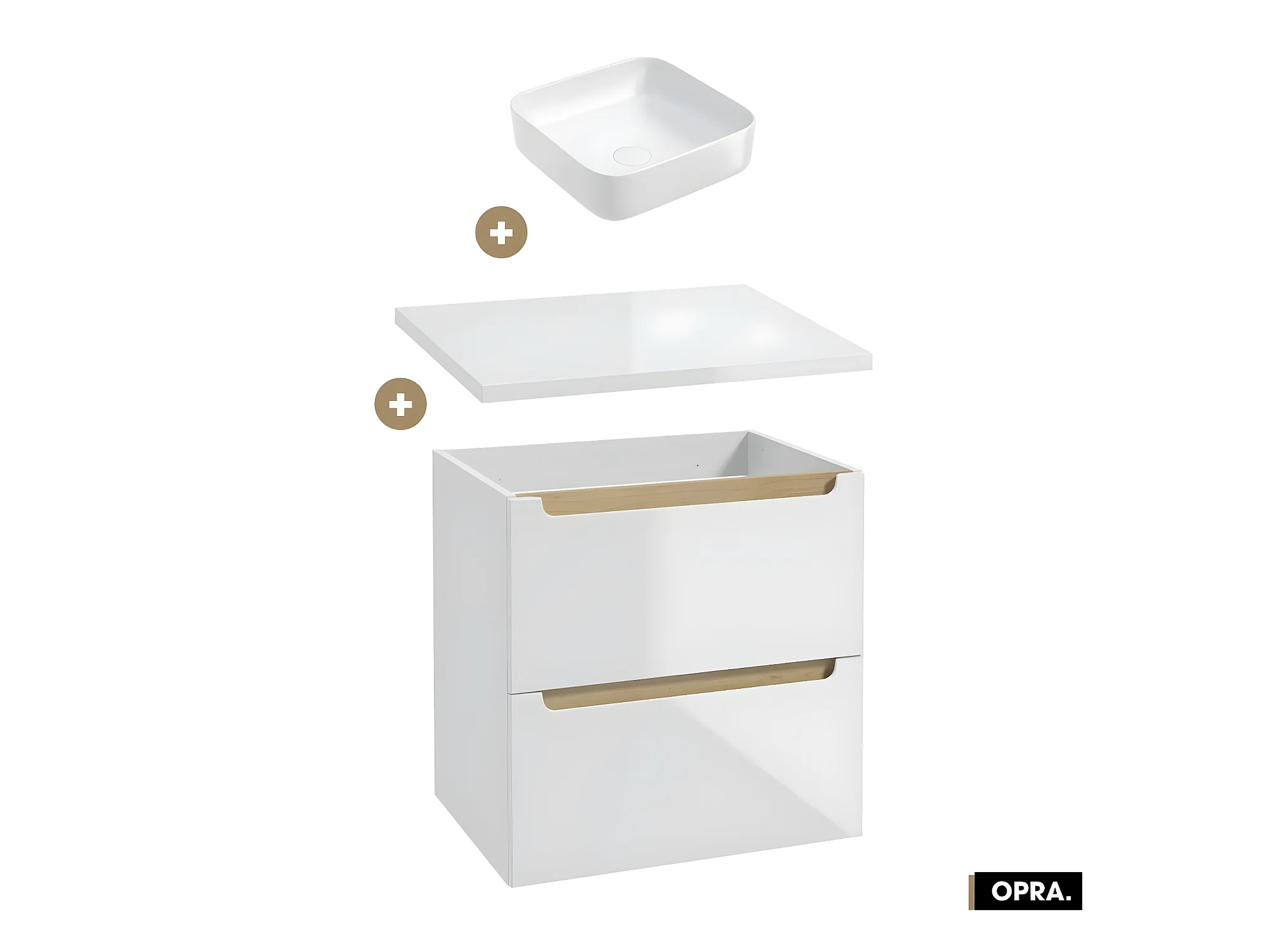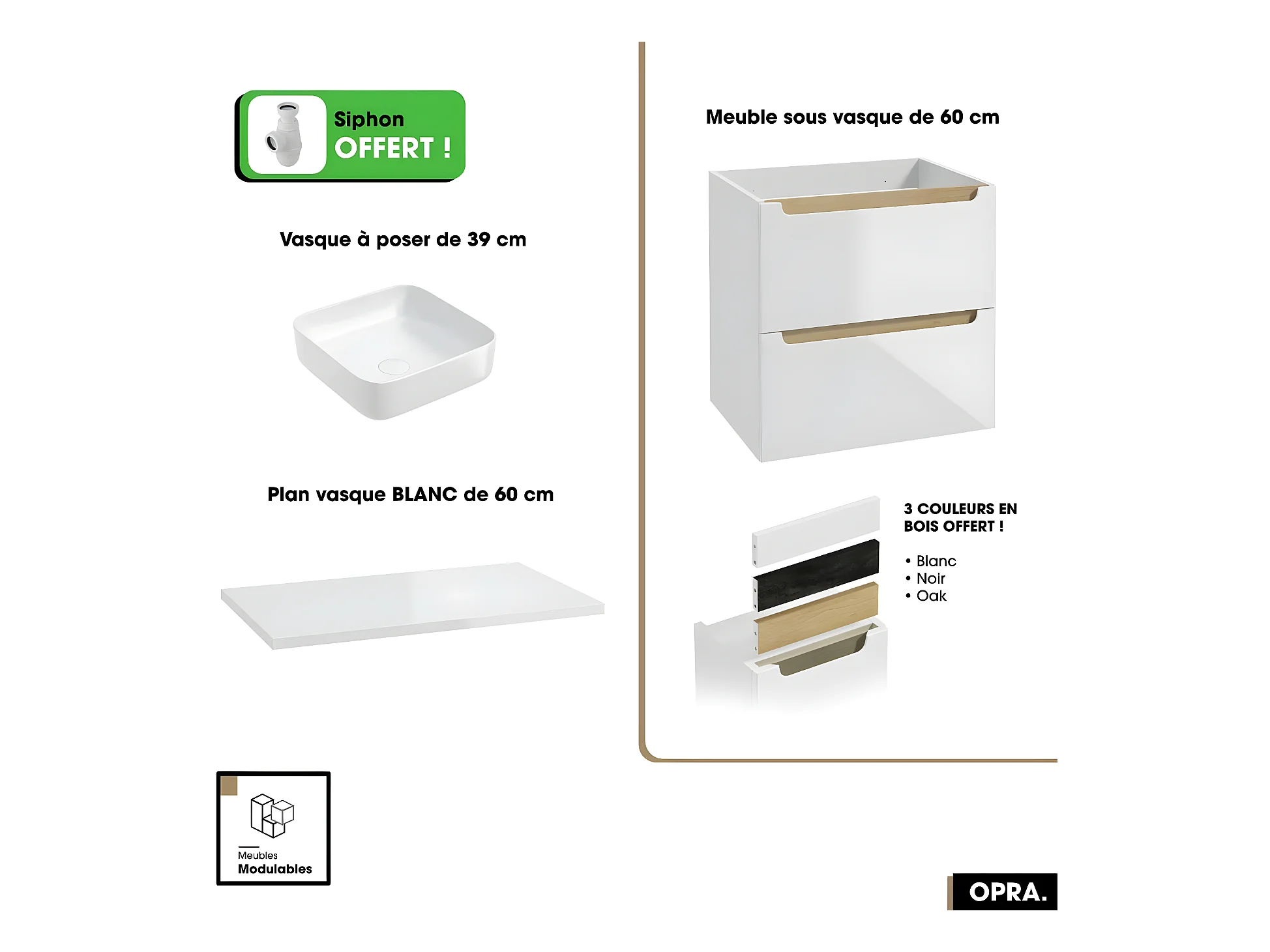 Ensemble meuble sous vasque avec plan et vasque à poser - Siphon OFFERT | OPRA | Blanc | 60 × 60 × 45 cm