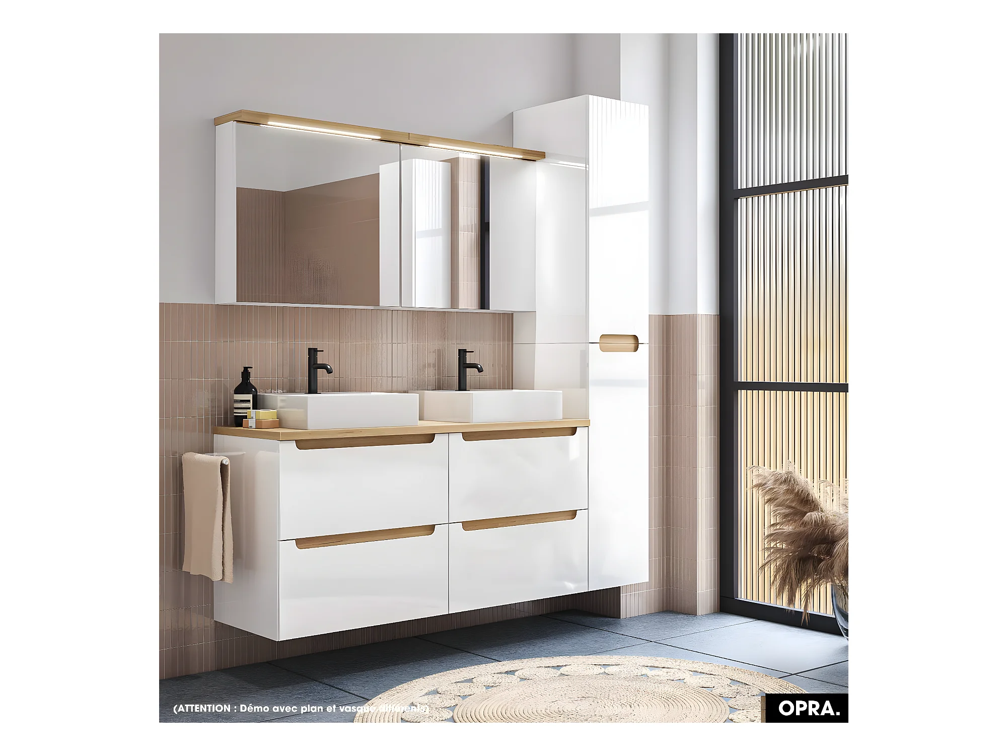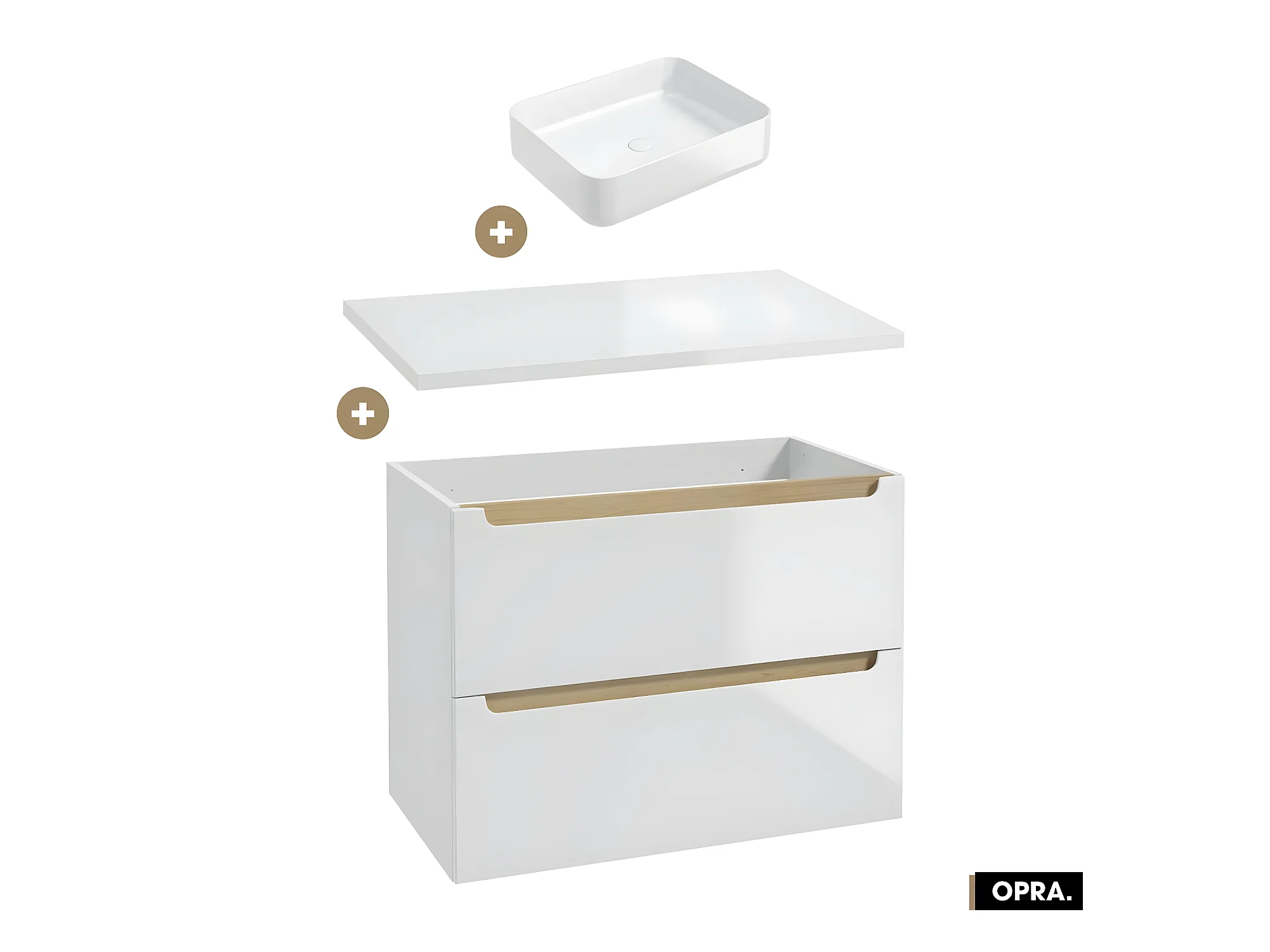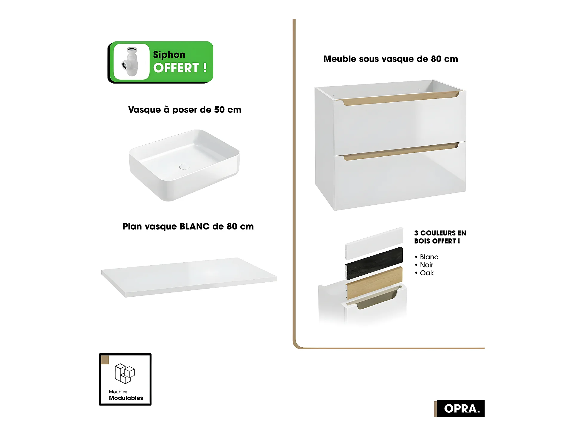 Ensemble meuble sous vasque avec plan et vasque à poser - Siphon OFFERT | OPRA | Blanc | 80 × 60 × 45 cm