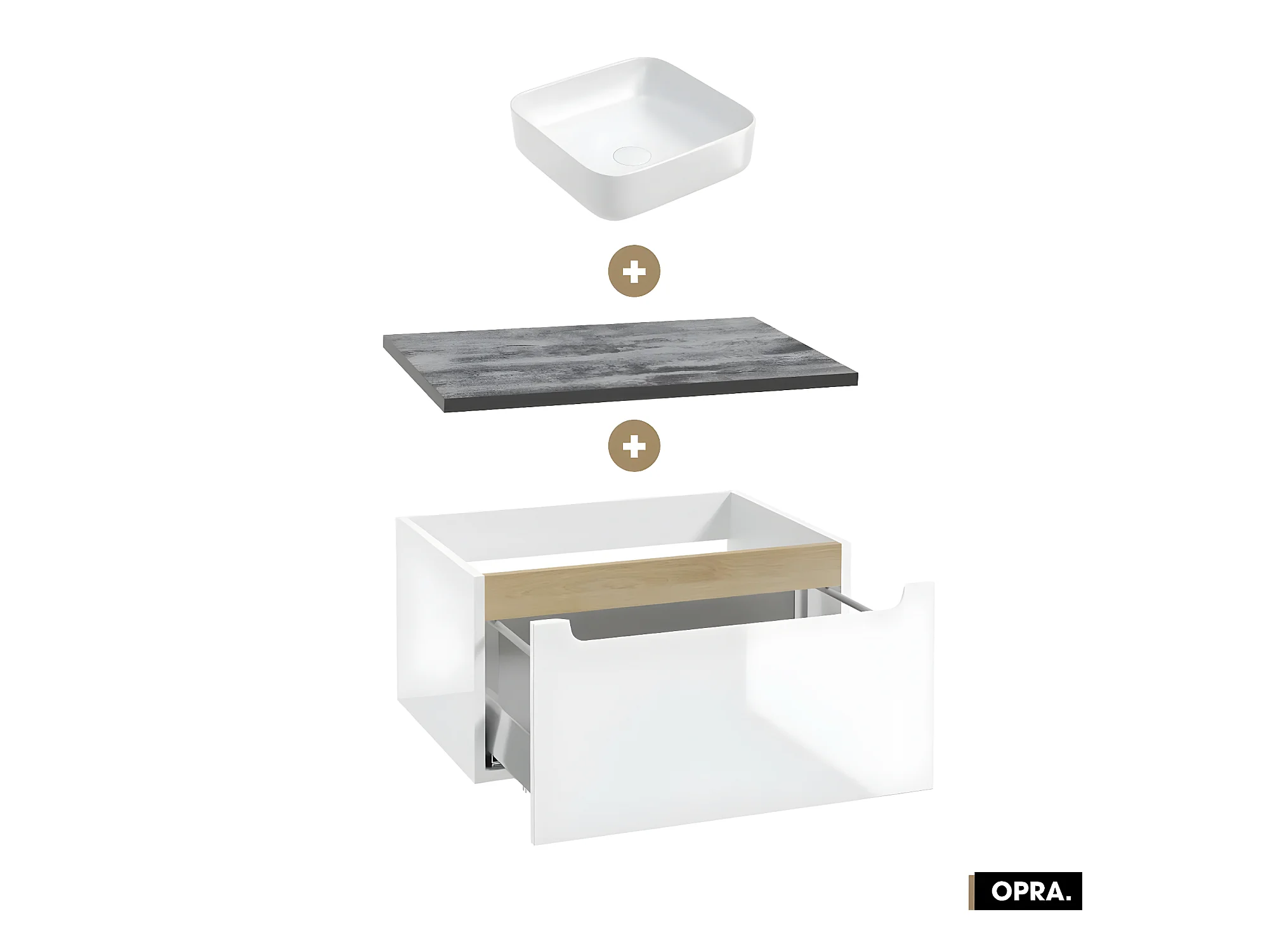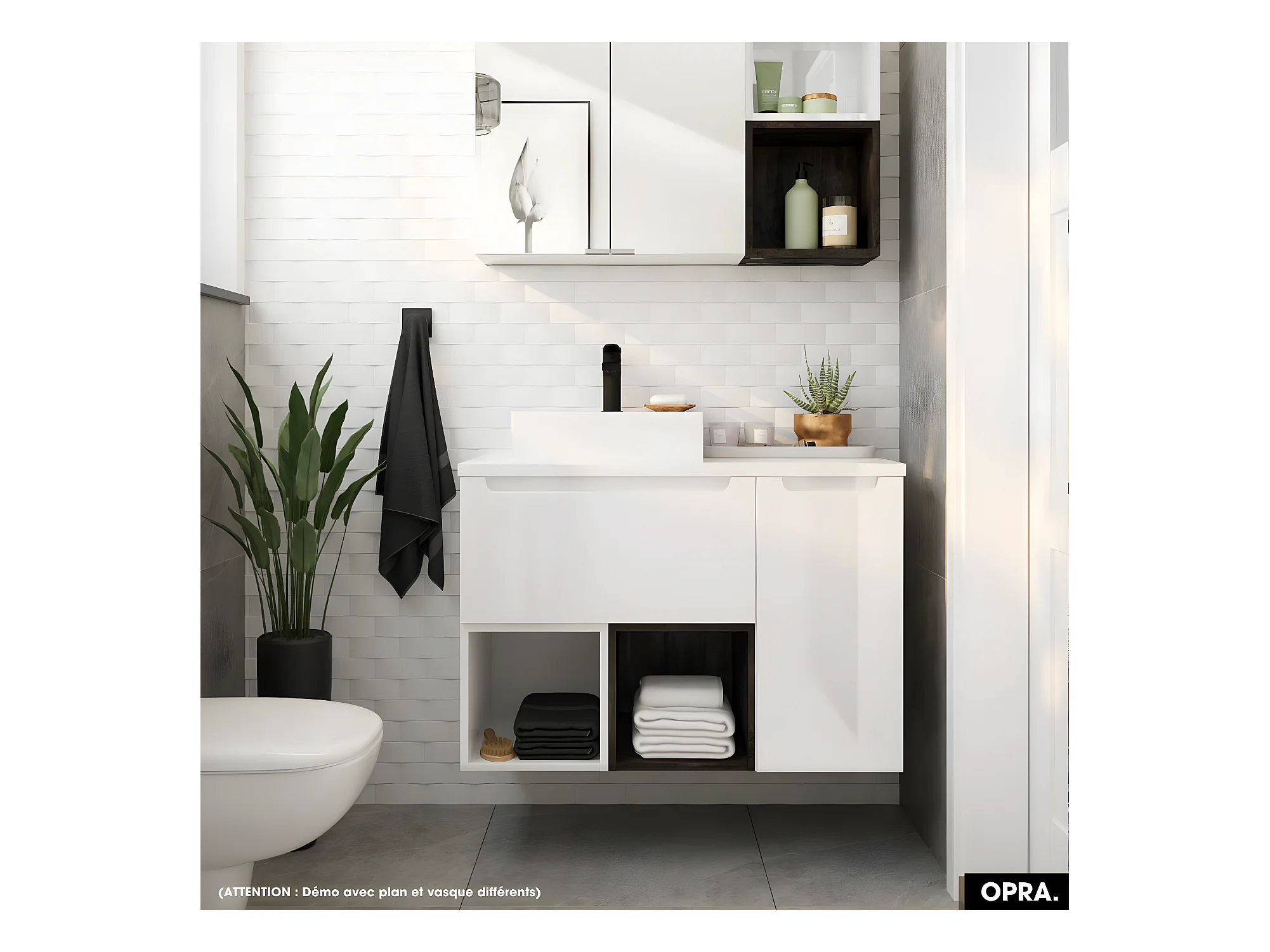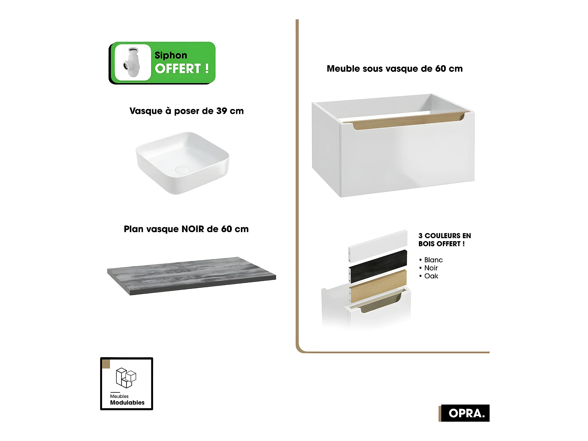 Ensemble meuble sous vasque avec plan et vasque à poser - Siphon OFFERT | OPRA | Blanc-Noir | 60 × 30 × 45 cm