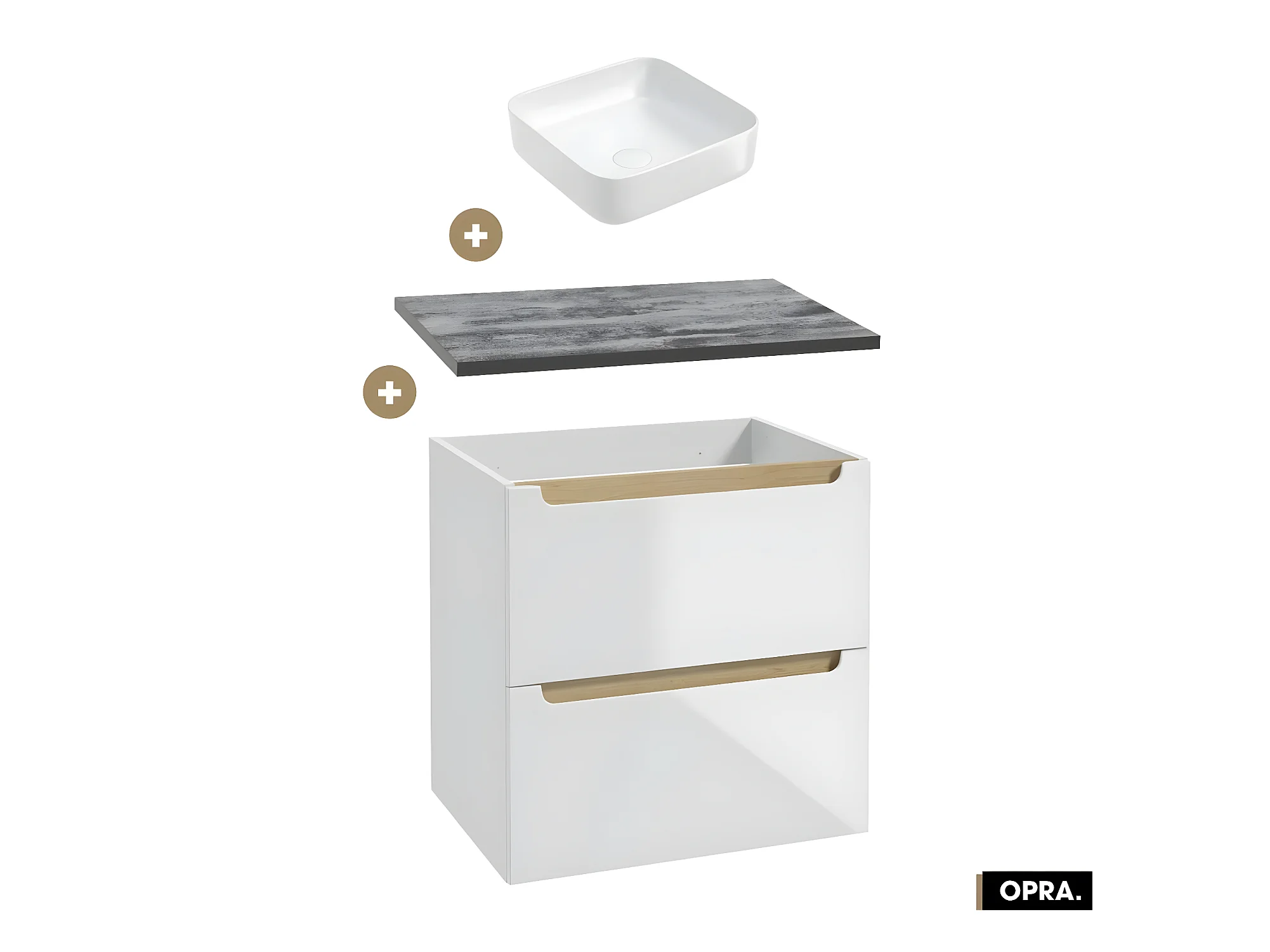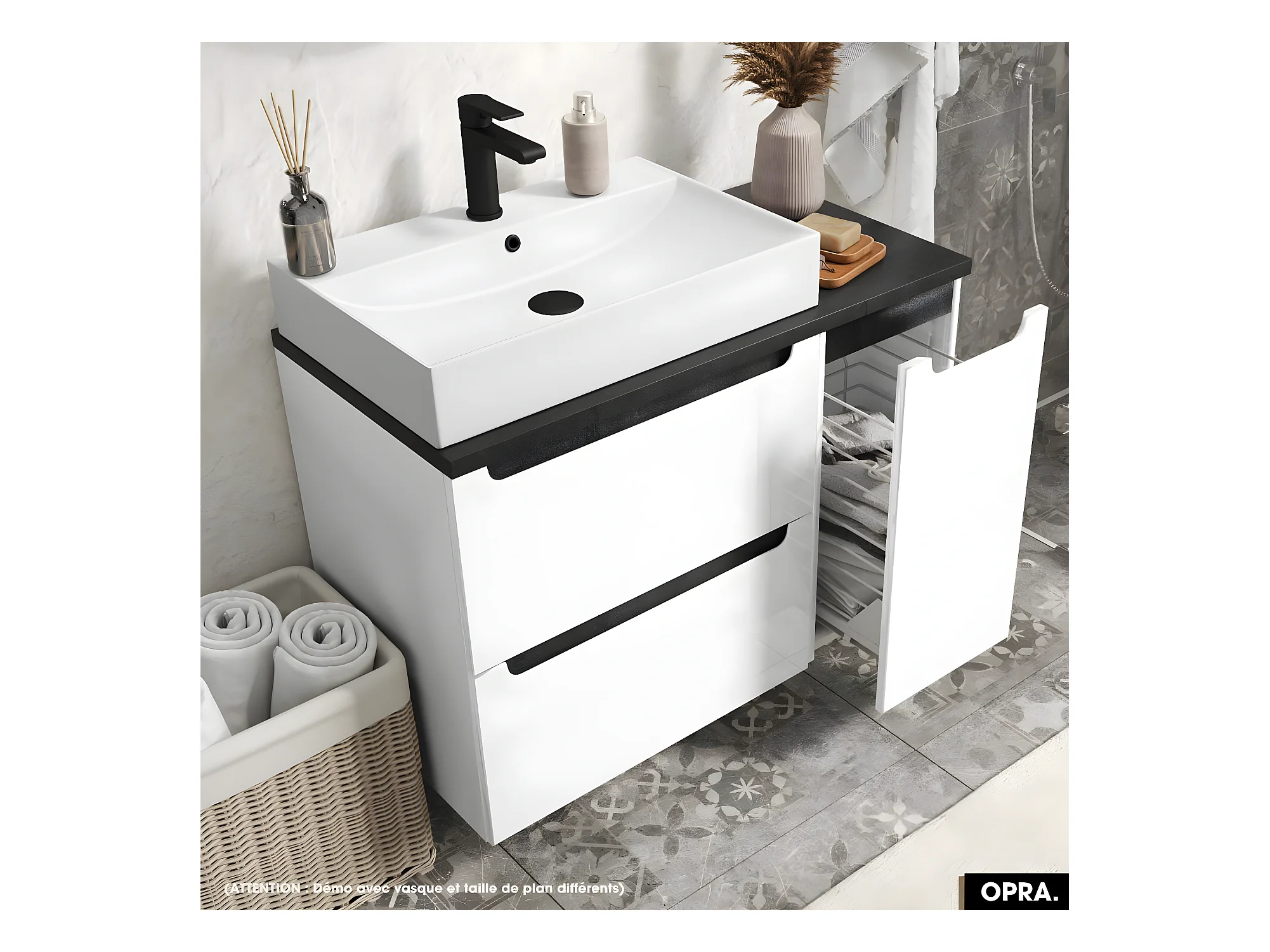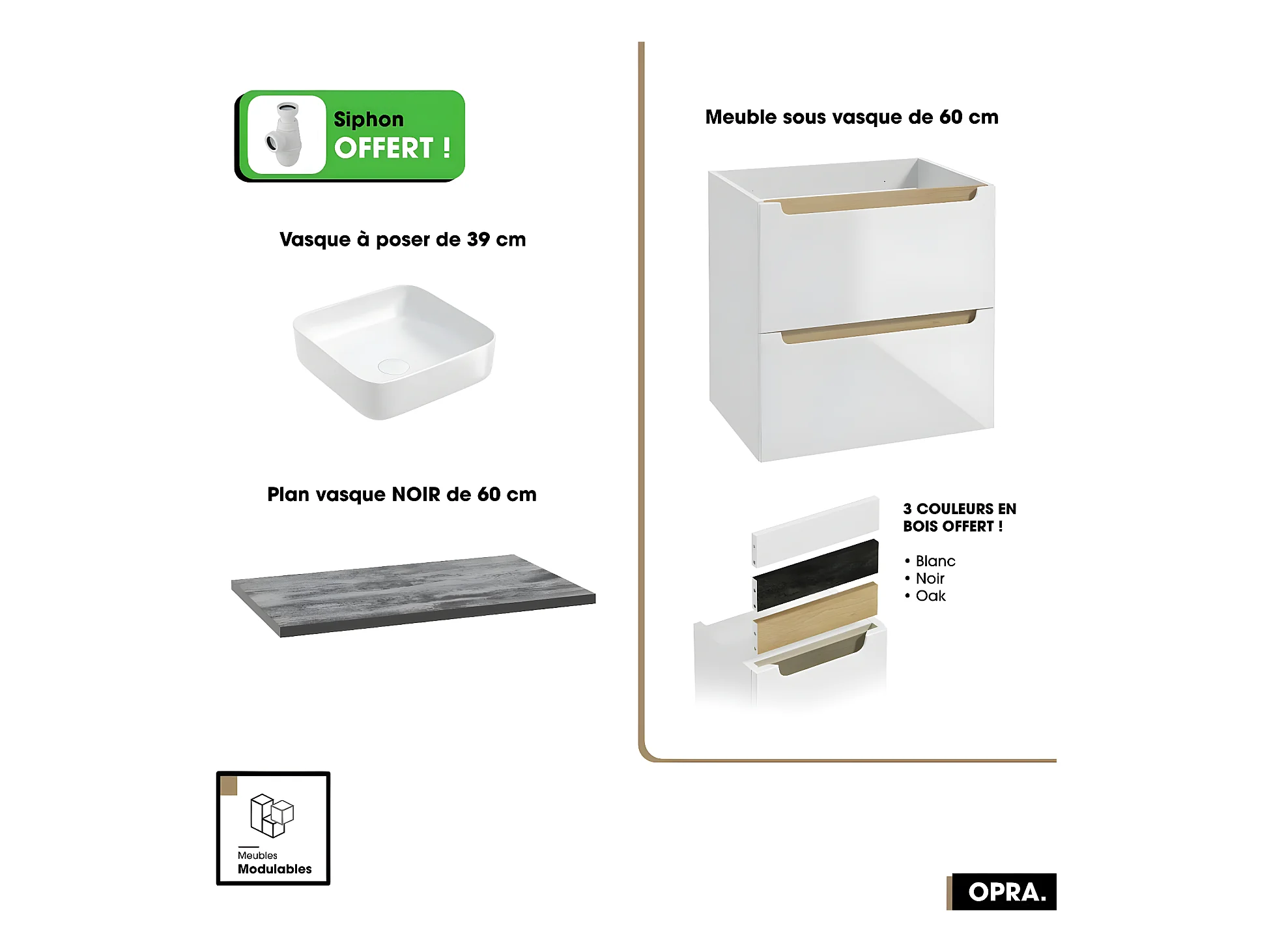 Ensemble meuble sous vasque avec plan et vasque à poser - Siphon OFFERT | OPRA | Blanc-Noir | 60 × 60 × 45 cm