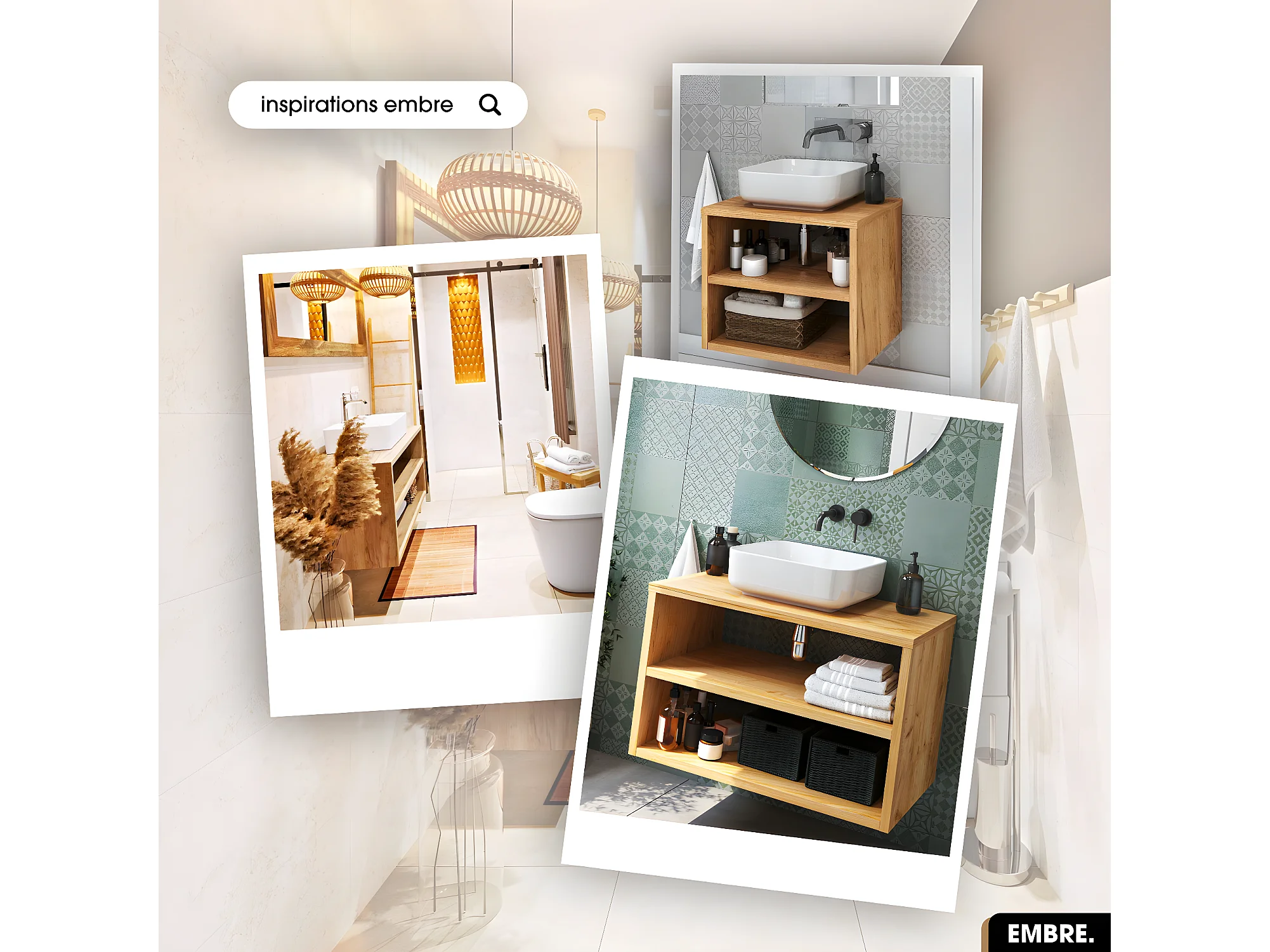 Ensemble meuble sous vasque avec vasque à poser - Siphon OFFERT | EMBRE | Noir | 100 x 50 x 45 cm