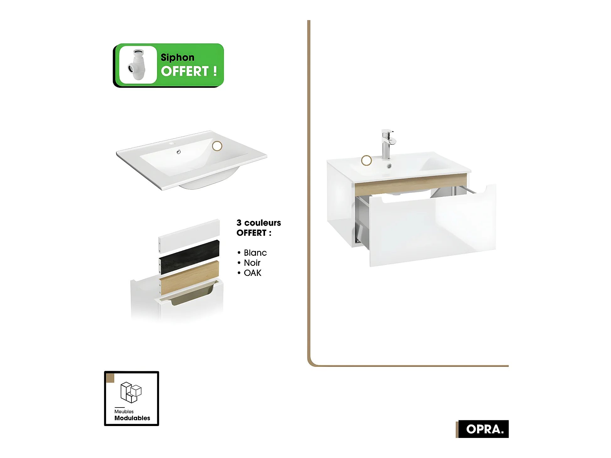Ensemble meuble sous vasque avec vasque - Siphon OFFERT | PURE | Blanc | 60 x 30 x 45 cm