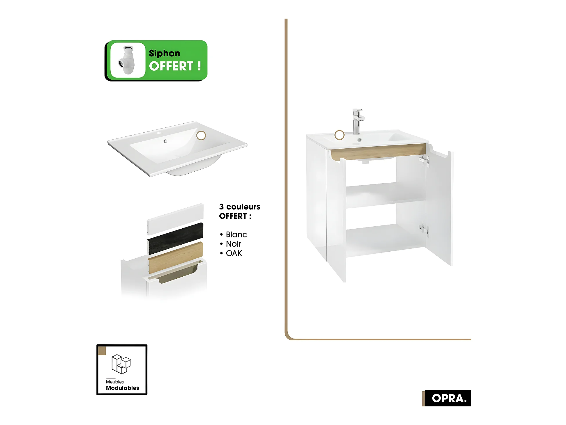 Ensemble meuble sous vasque avec vasque - Siphon OFFERT | PURE | Blanc | 60 x 60 x 45 cm