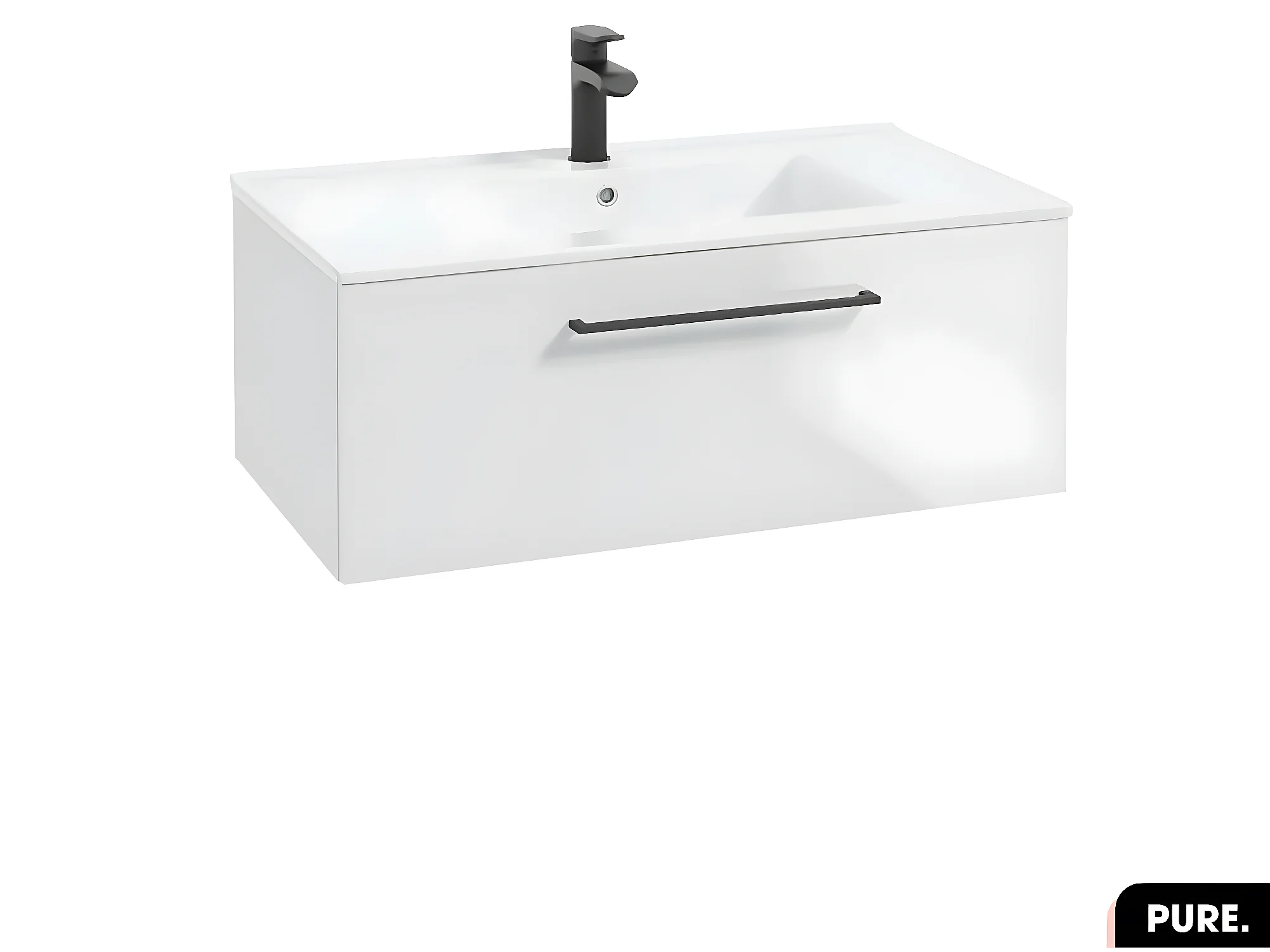 Ensemble meuble sous vasque avec vasque - Siphon OFFERT | PURE | Blanc | 80 × 30 × 45