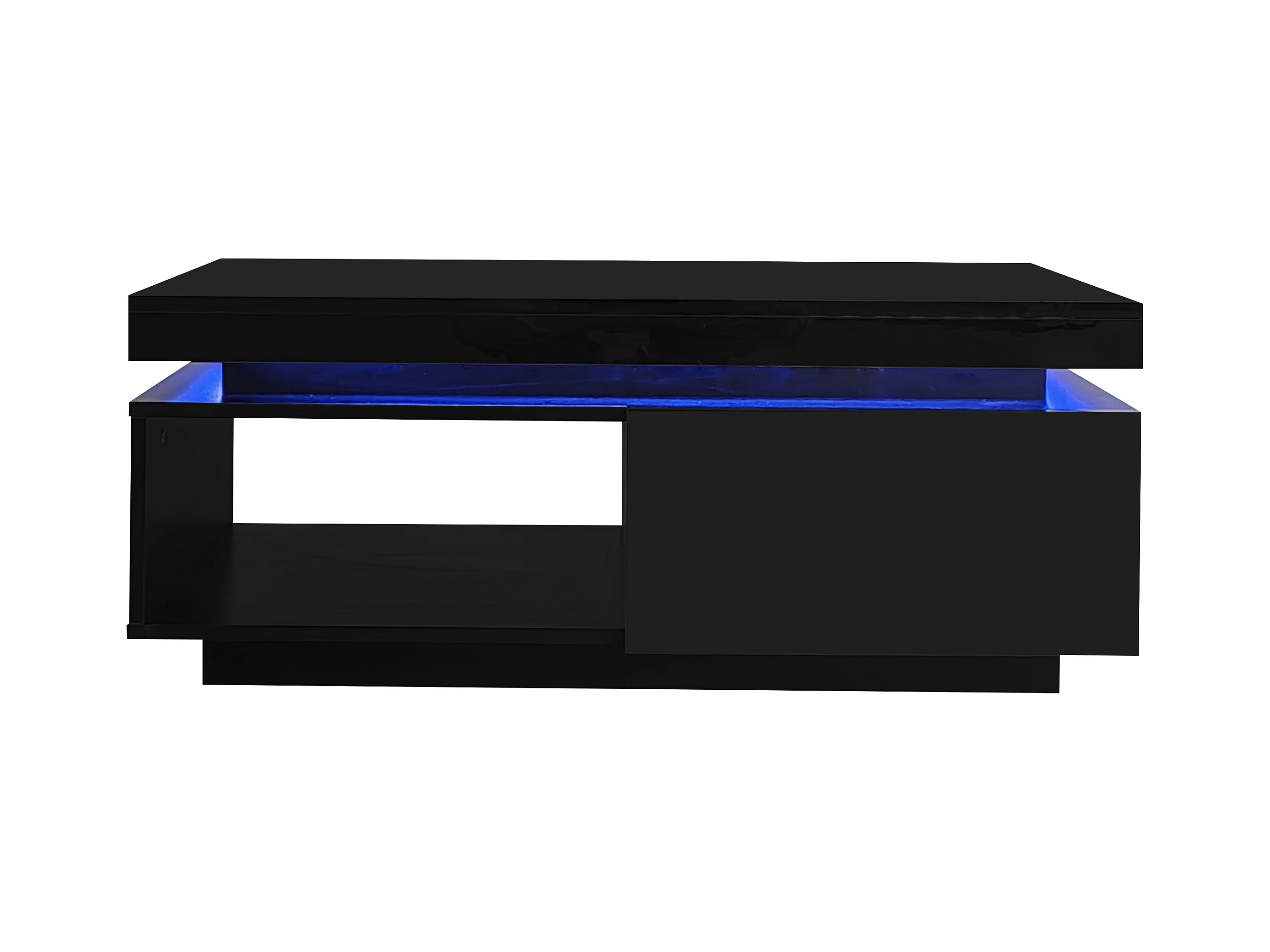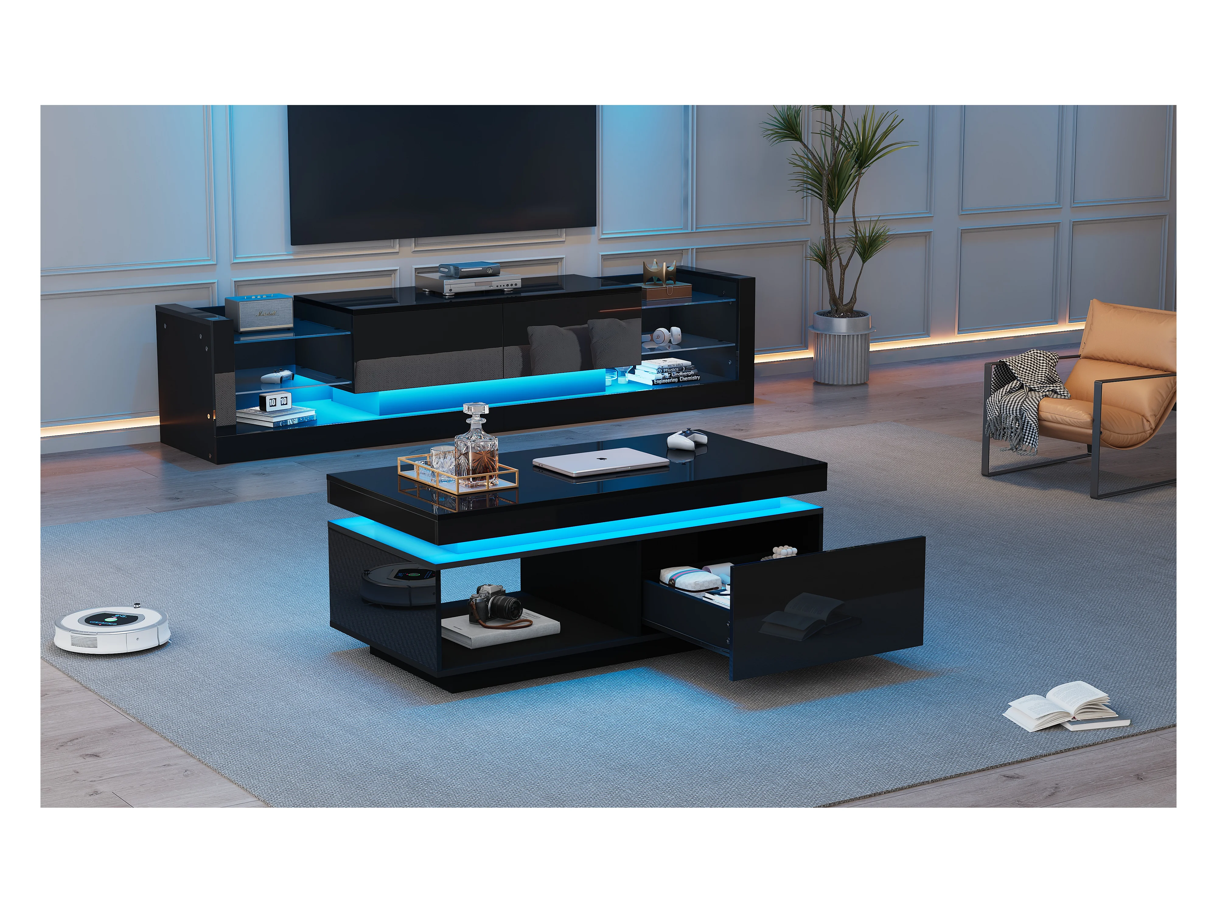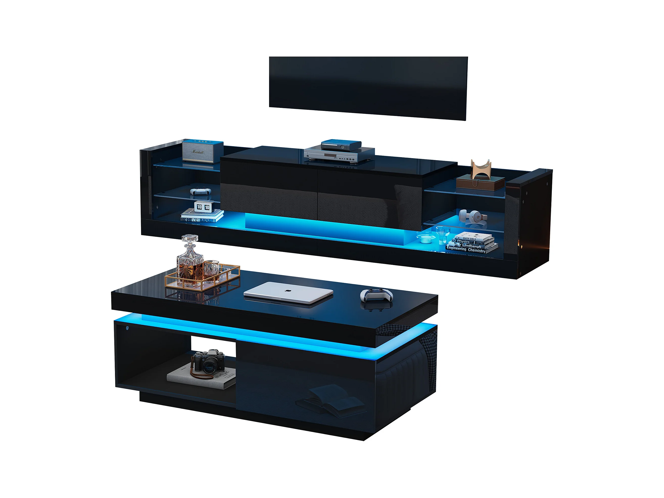 Ensemble meuble TV : 181 x 38 x 38 cm + table basse : 100 x 50 x 40 cm - LEDs - Panneau de particules - Noir brillant