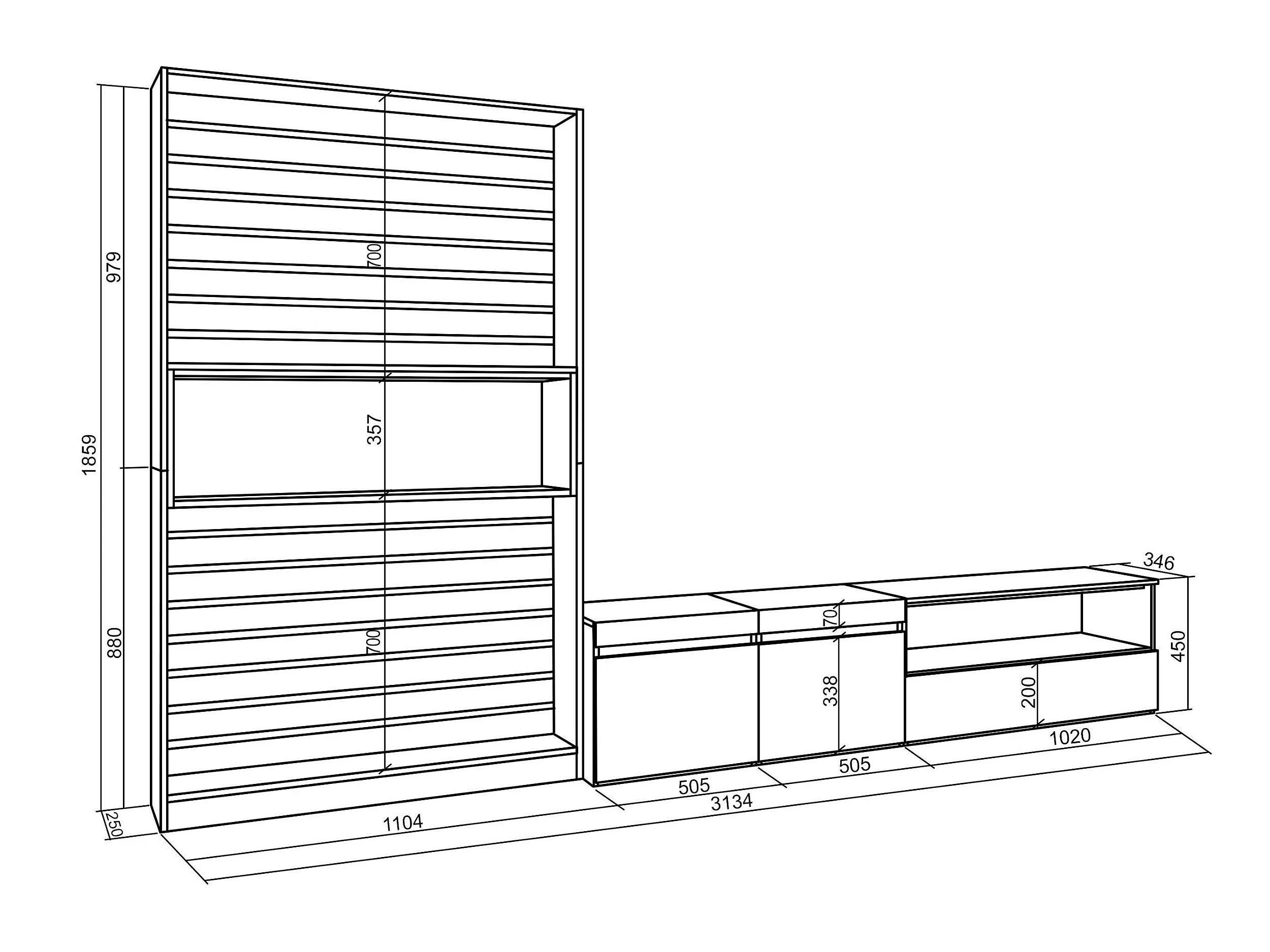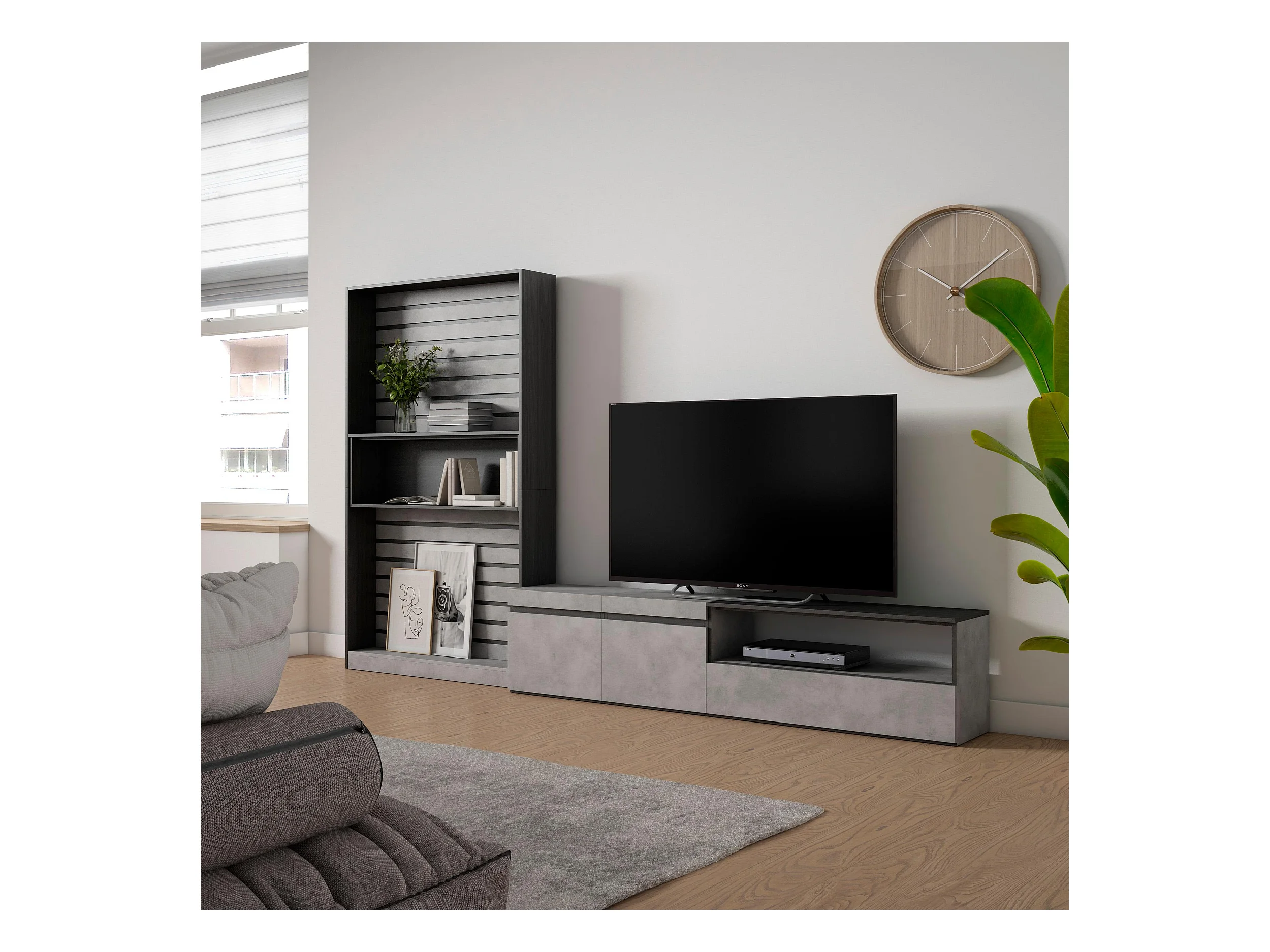 Ensemble Meuble TV, 310x186x35cm, Pour les TV jusqu'à 80", Salon Complet, Ciment
