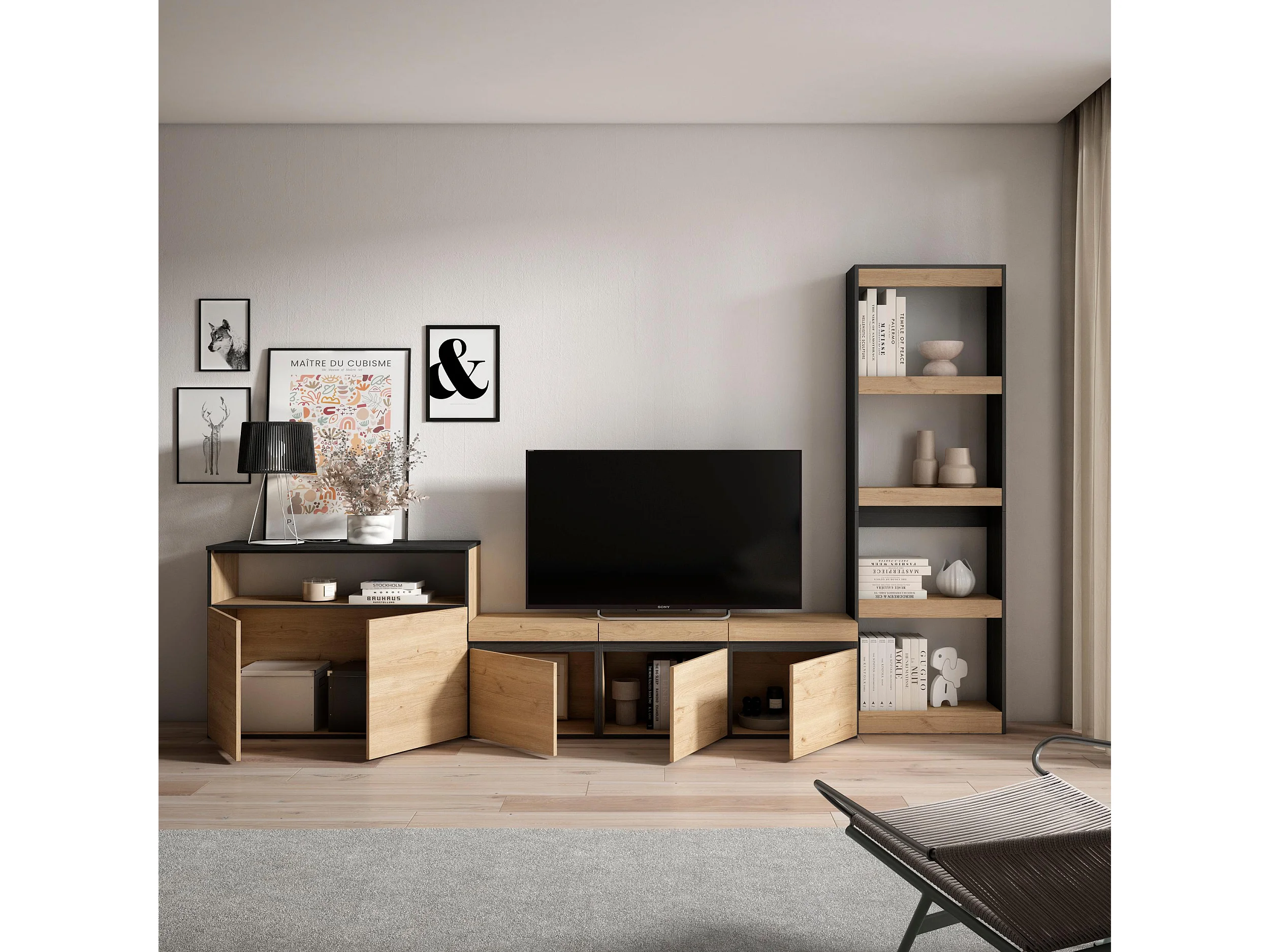 Ensemble Meuble TV, 310x35x186cm, Pour les TV jusqu'à 65", Salon Complet, Chêne et noir