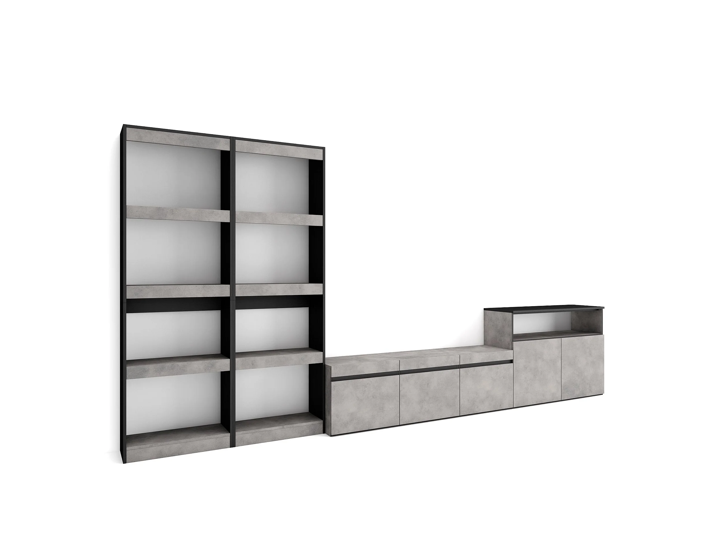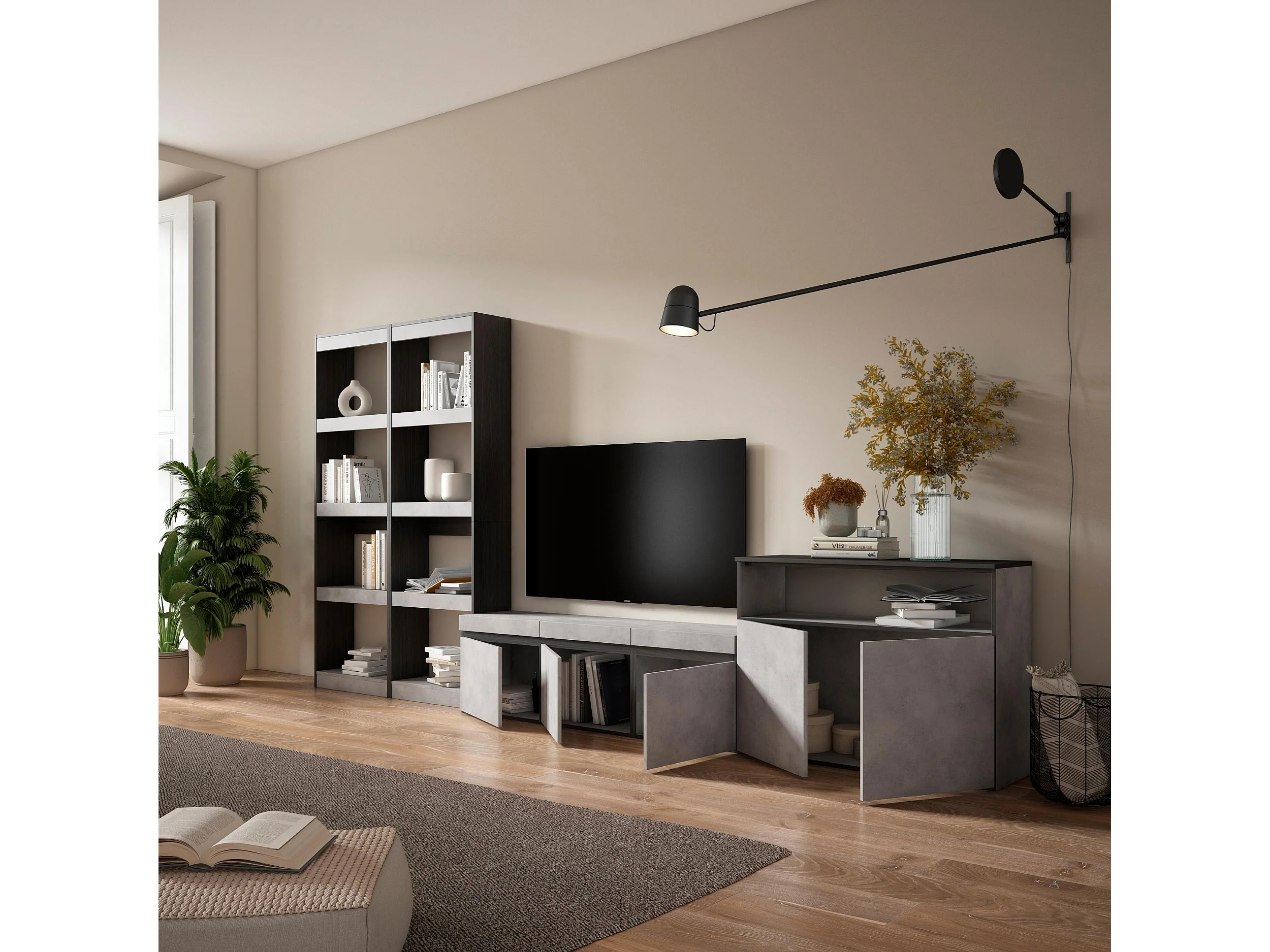 Ensemble Meuble TV, 370x35x186cm, Pour les TV jusqu'à 65", Salon Complet, Ciment