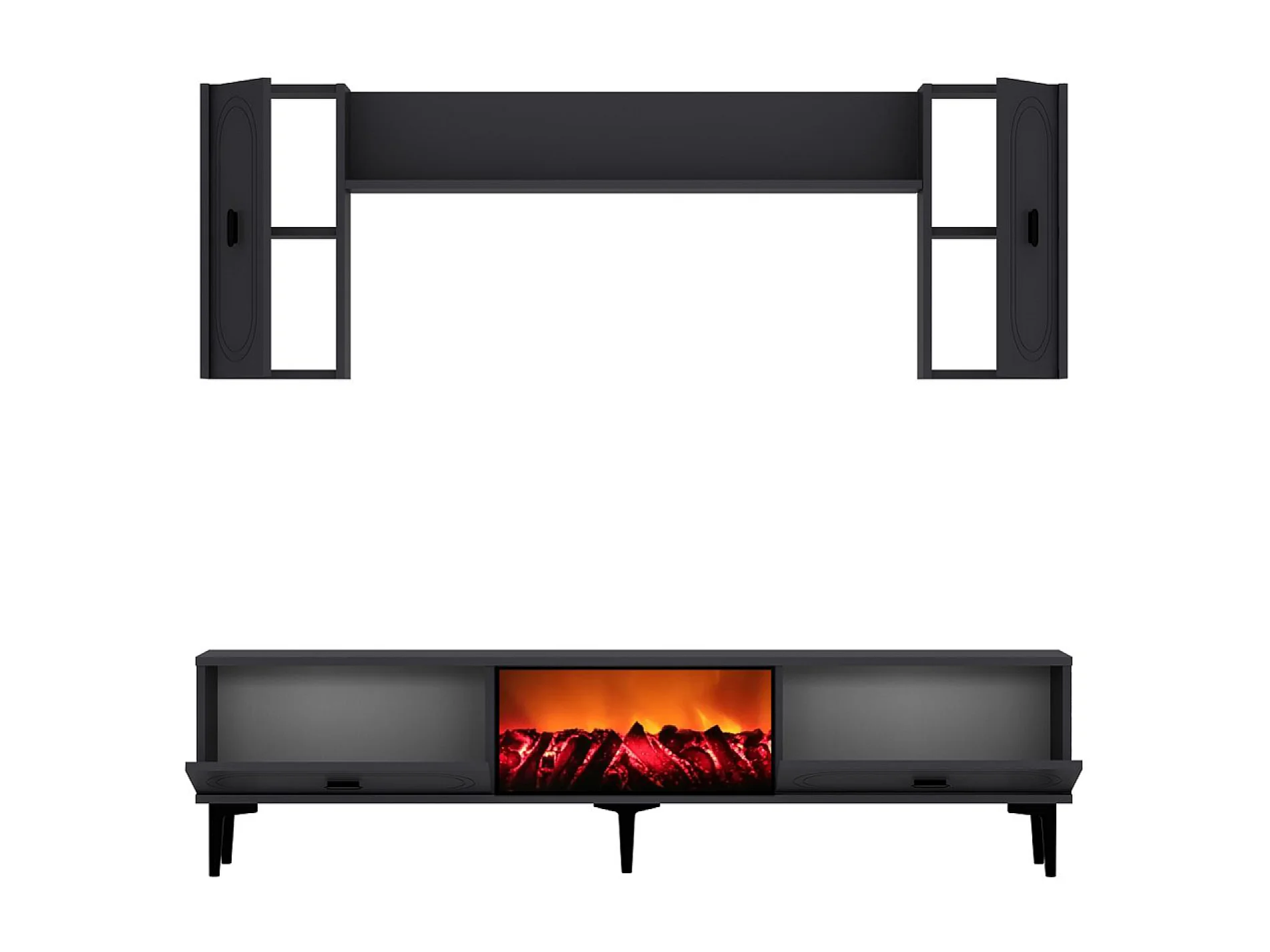 Ensemble meuble TV avec étagères murales et cheminée LED 150cm gris anthracite VIBRA