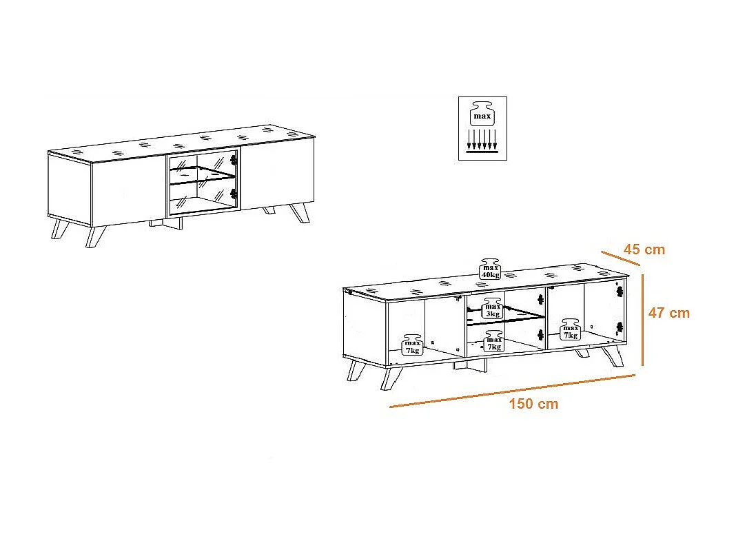 Ensemble Meuble TV & Bibliothèque "Thin" 330cm Noir & Naturel