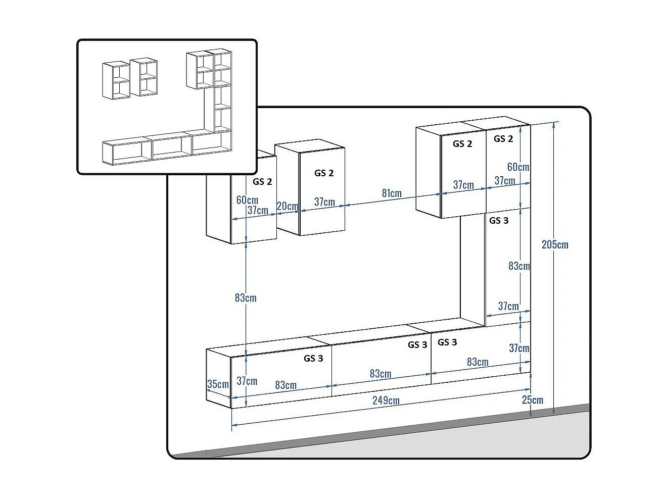 Ensemble meuble TV CONCEPT 23-23-HG-B-1 noir brillant 249 cm