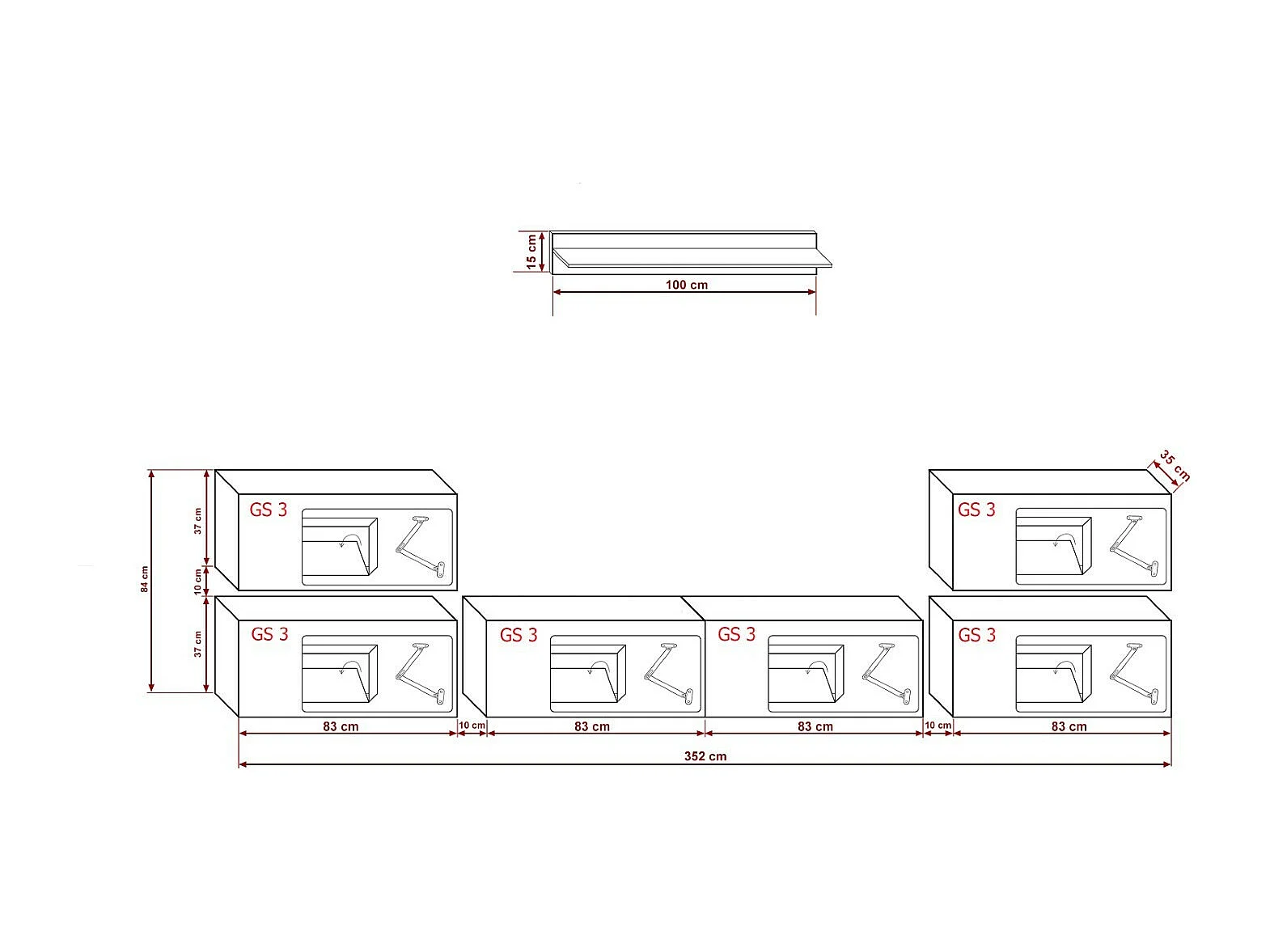 Ensemble meuble TV CONCEPT 78-78-HG-B-1 noir brillant 352 cm