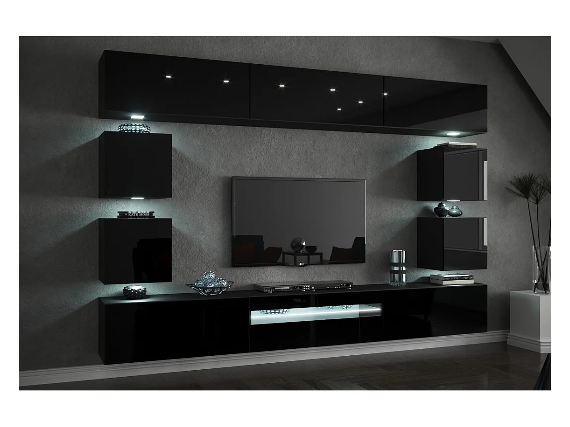 Ensemble meuble TV CONCEPT C81-18W-HG2-1A noir brillant 257 cm