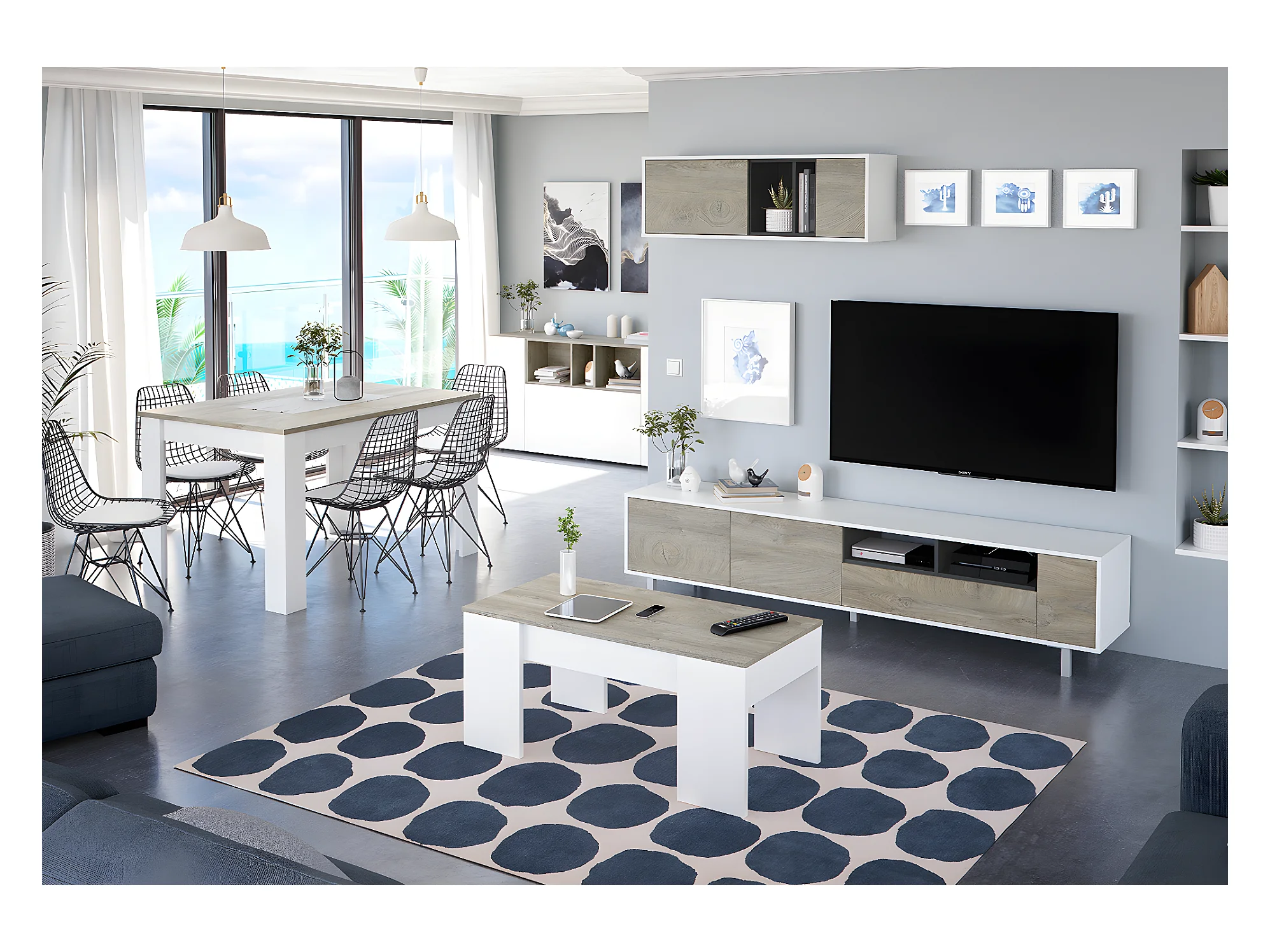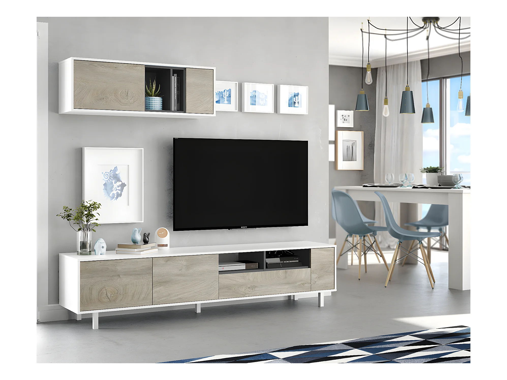 Ensemble meuble TV de 2 éléments coloris chêne à nœuds blanc artik - Hauteur 47 x Longueur 200 x Profondeur 40 cm