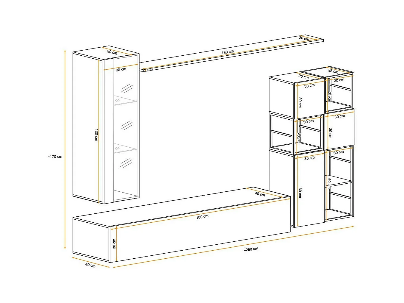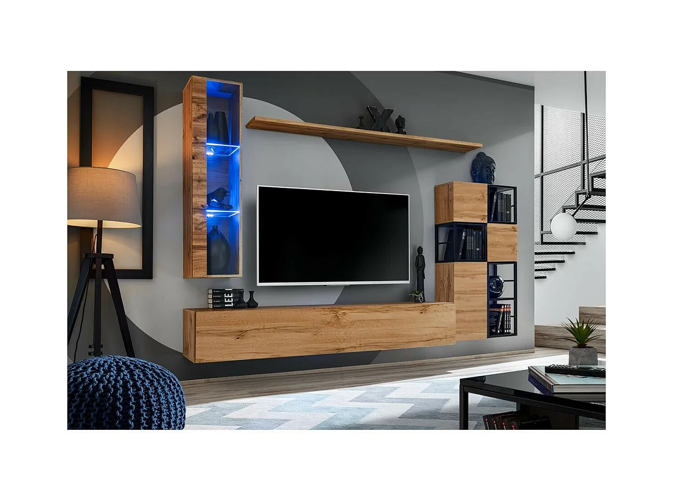Ensemble Meuble TV Design "Switch II" 250cm Naturel & Noir