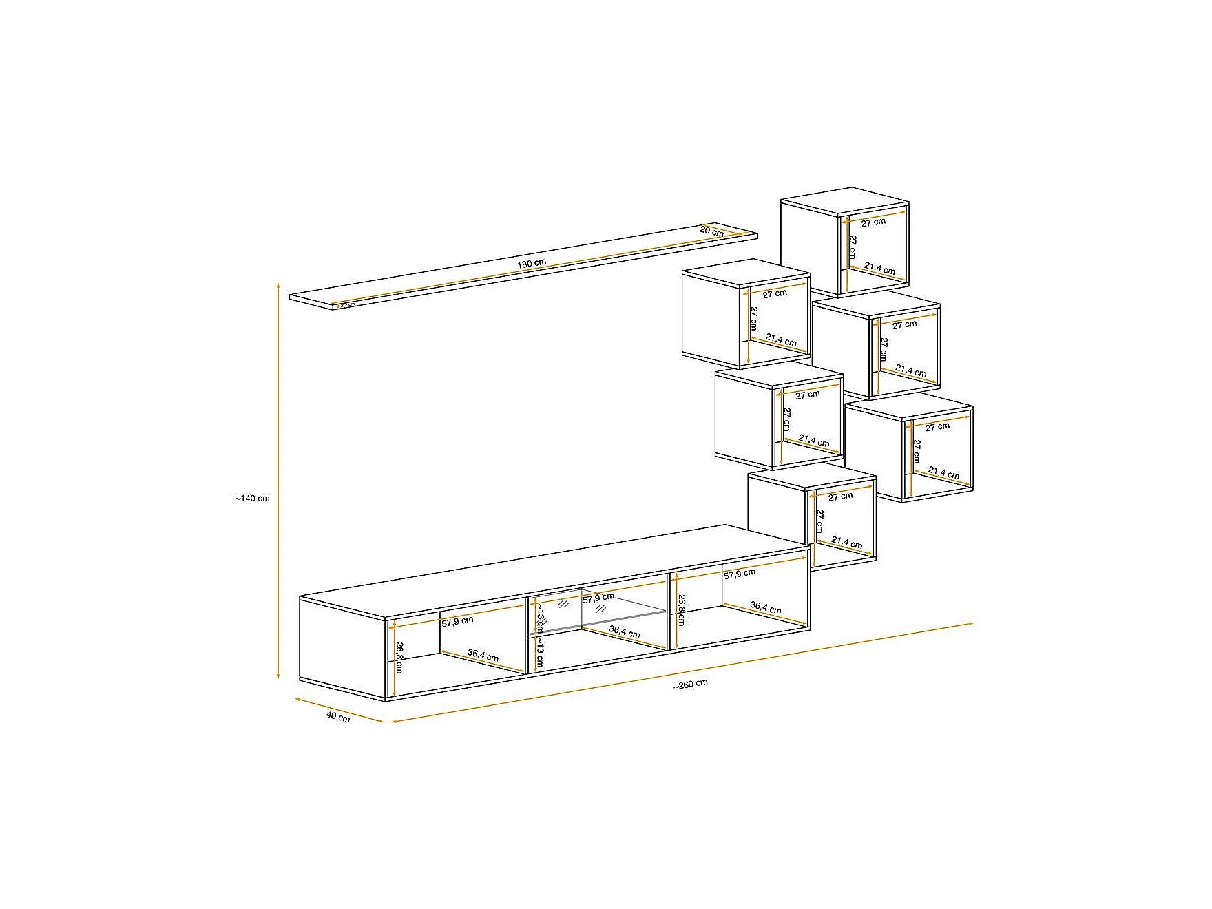 Ensemble Meuble TV Design "Switch XXI" 260cm Blanc