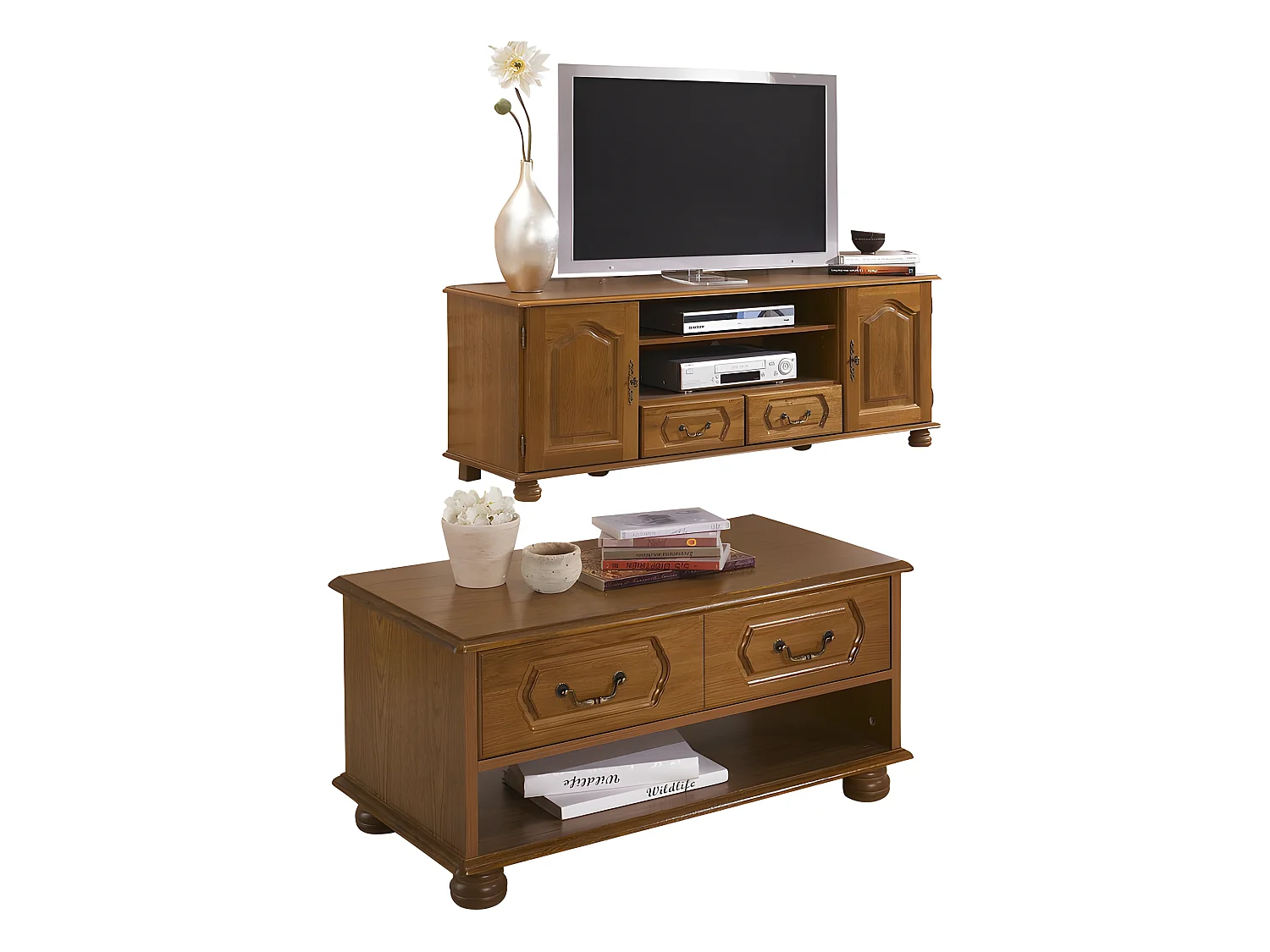 Ensemble Meuble TV et Table basse chêne rustique