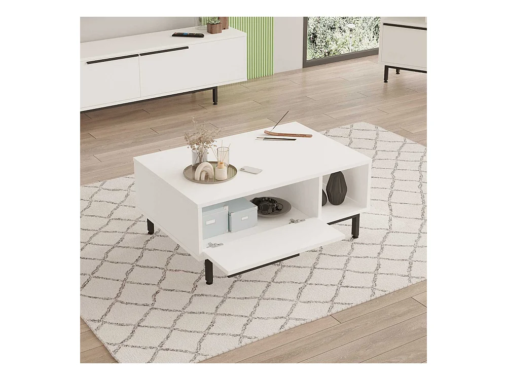Ensemble meuble TV et table basse en aggloméré et métal Tilly