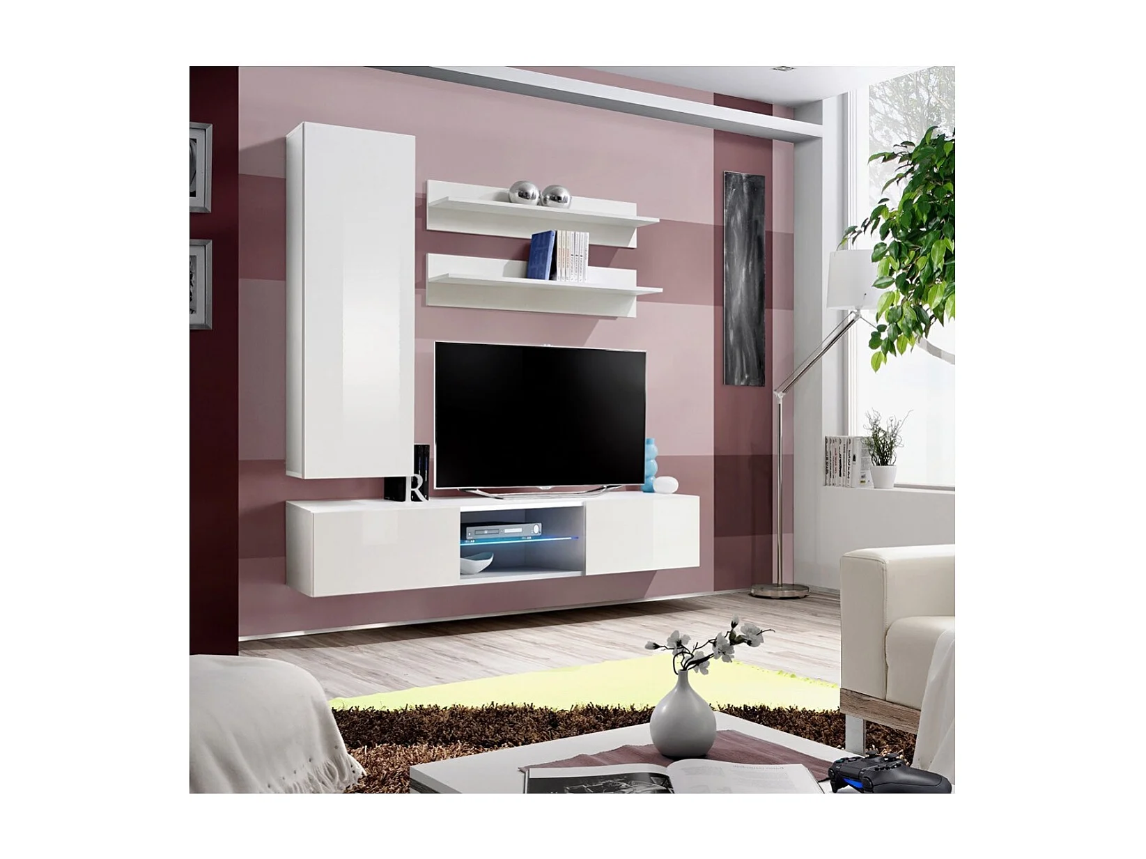 Ensemble Meuble TV FLY S1 avec LED. Coloris blanc. Meuble suspendu design pour votre salon.