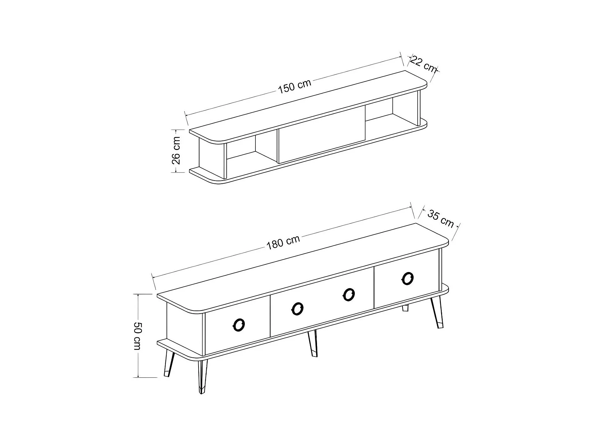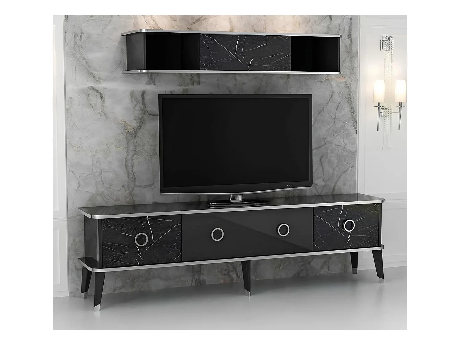 Ensemble meuble TV MARBRE 180 cm Noir brillant