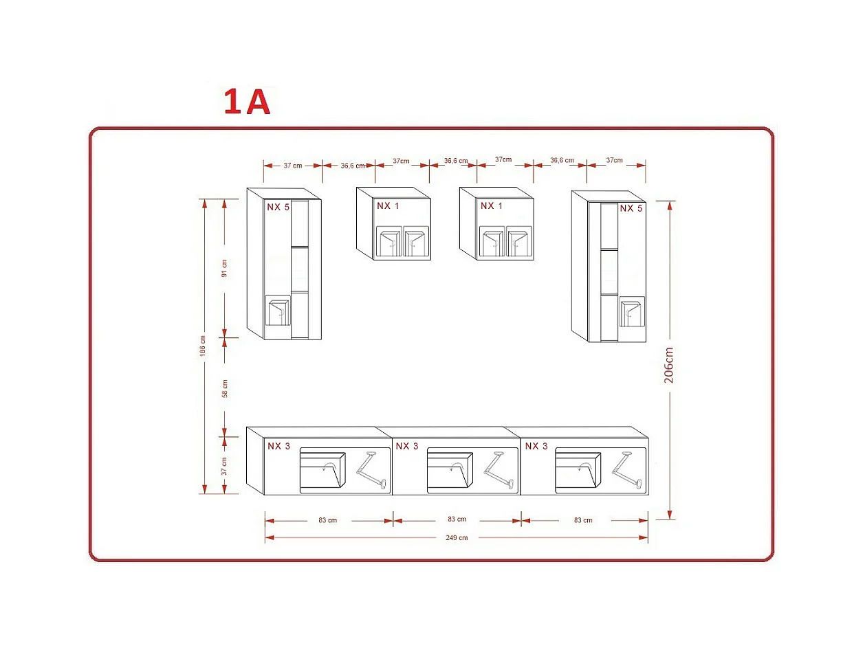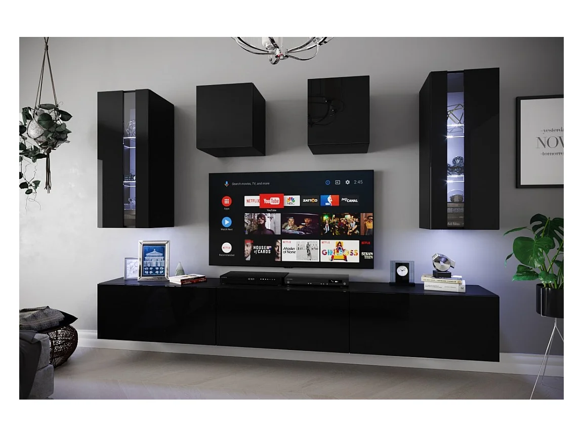 Ensemble meuble TV NEXT 291 AN291-17B-HG20-1A noir brillant 249 cm
