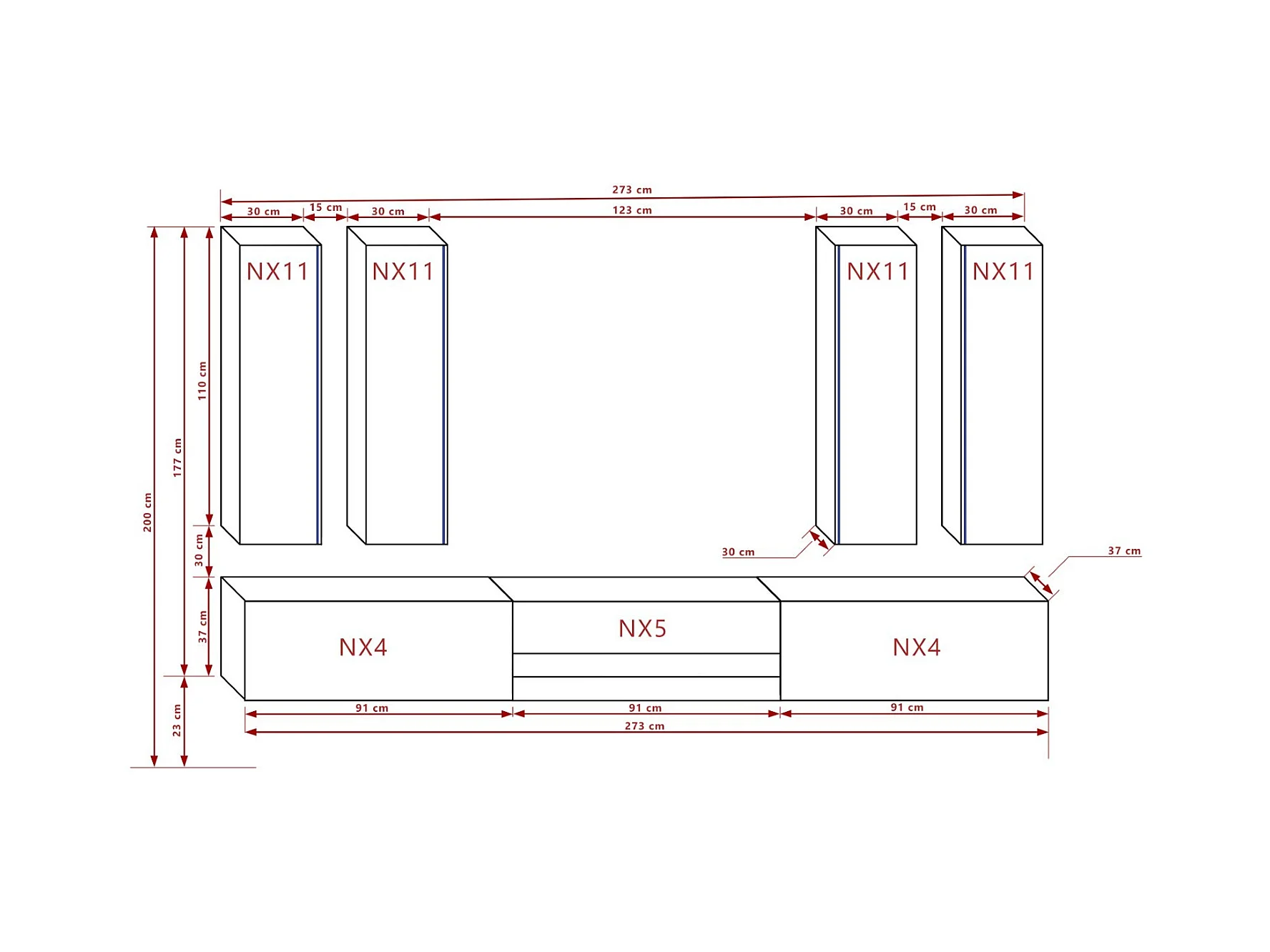 Ensemble meuble TV NEXT 52 AN52-18B-HG1 noir brillant 273 cm
