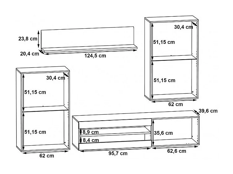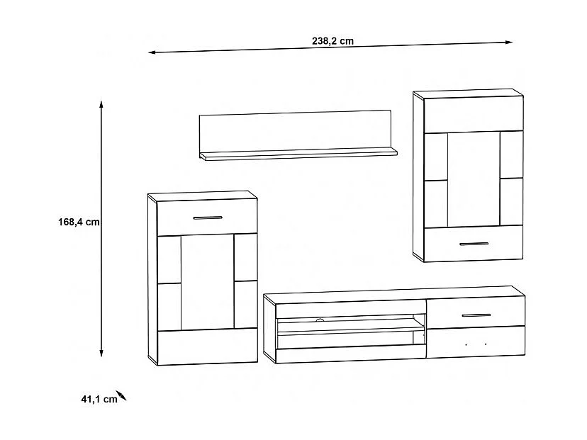Ensemble meuble TV paroi murale décor bois clair et noir - SONNY