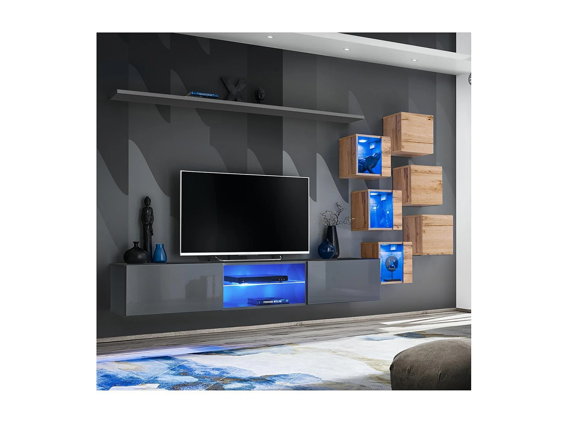 Ensemble Meuble TV "Switch XXI" 260cm Gris & Naturel