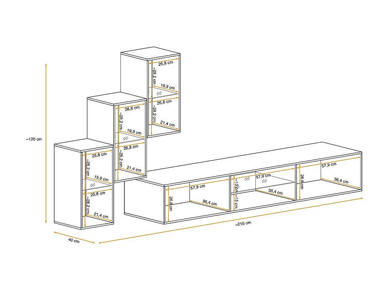 Ensemble Meuble TV "Switch XXII" 210cm Noir & Naturel
