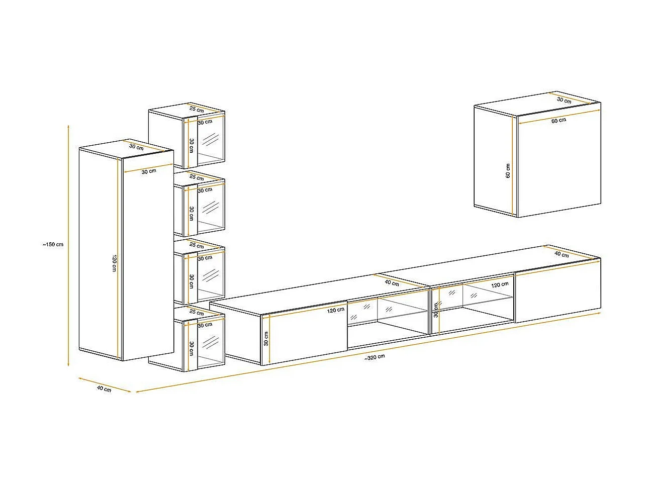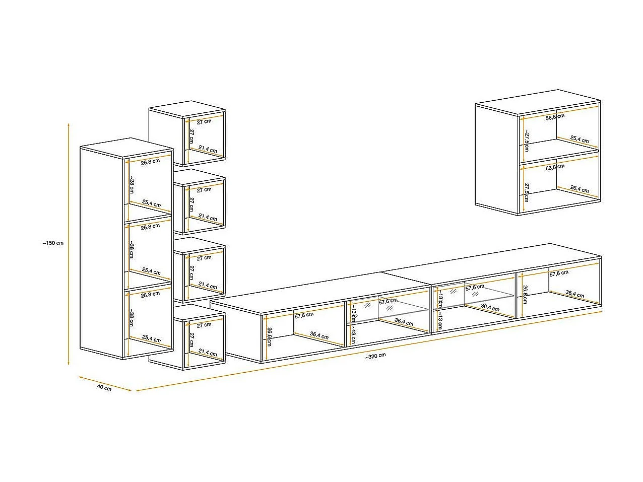 Ensemble Meuble TV "Switch XXVI" 320cm Noir & Naturel