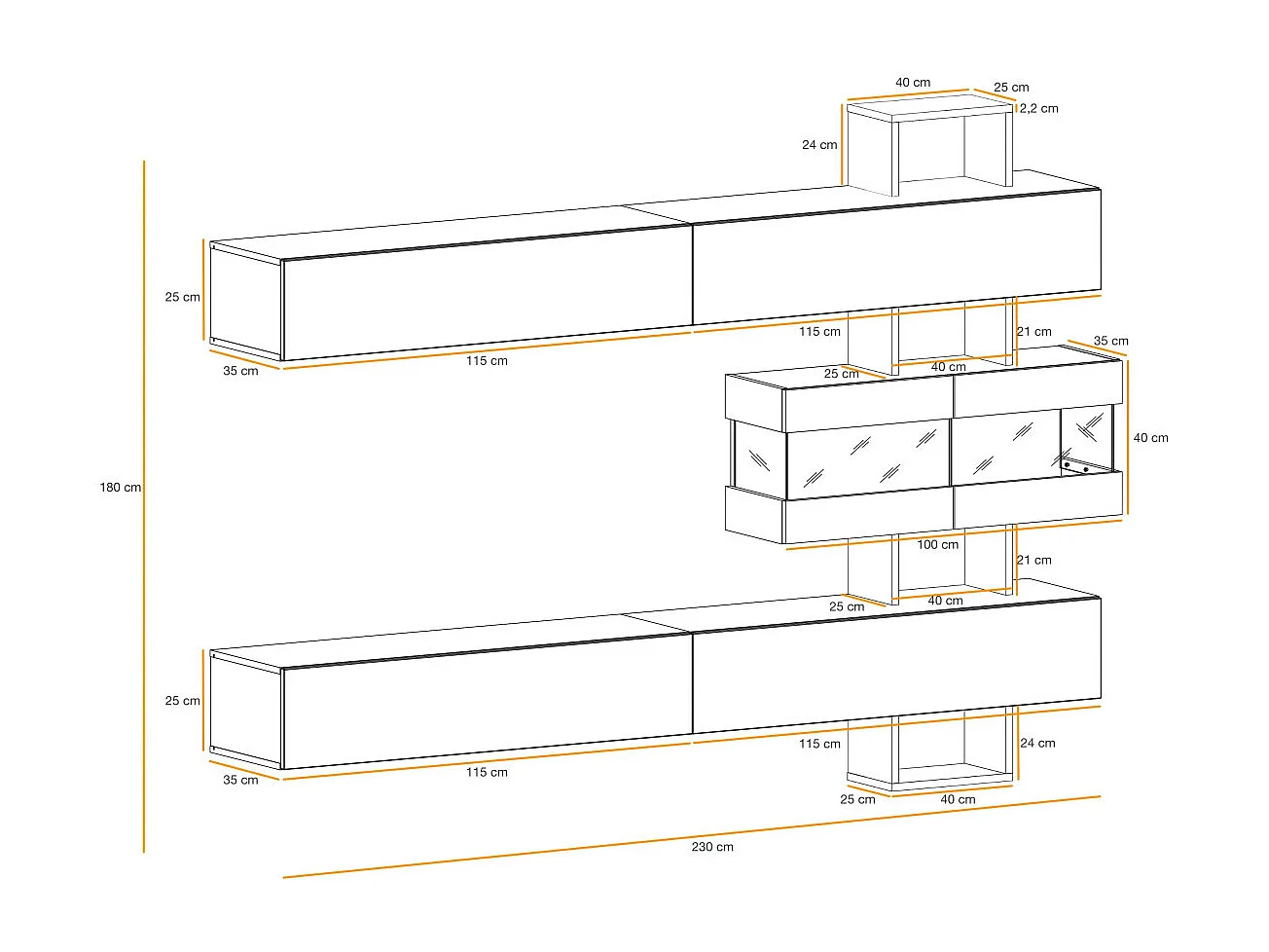 Ensemble Meuble TV "Tokyo" 250cm Gris & Chêne