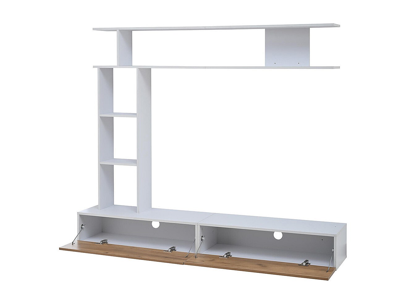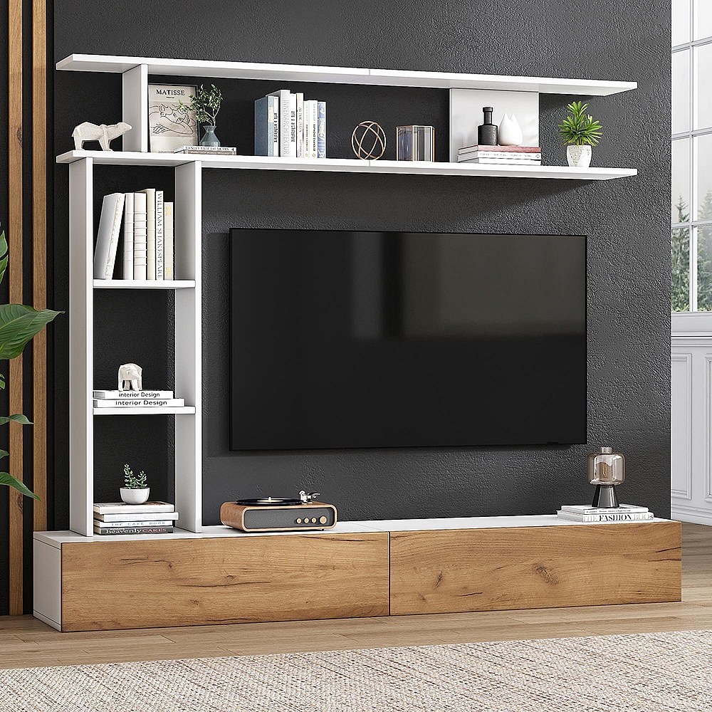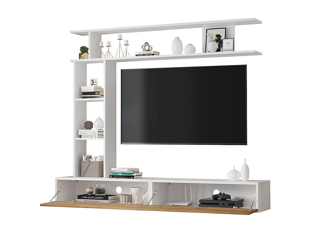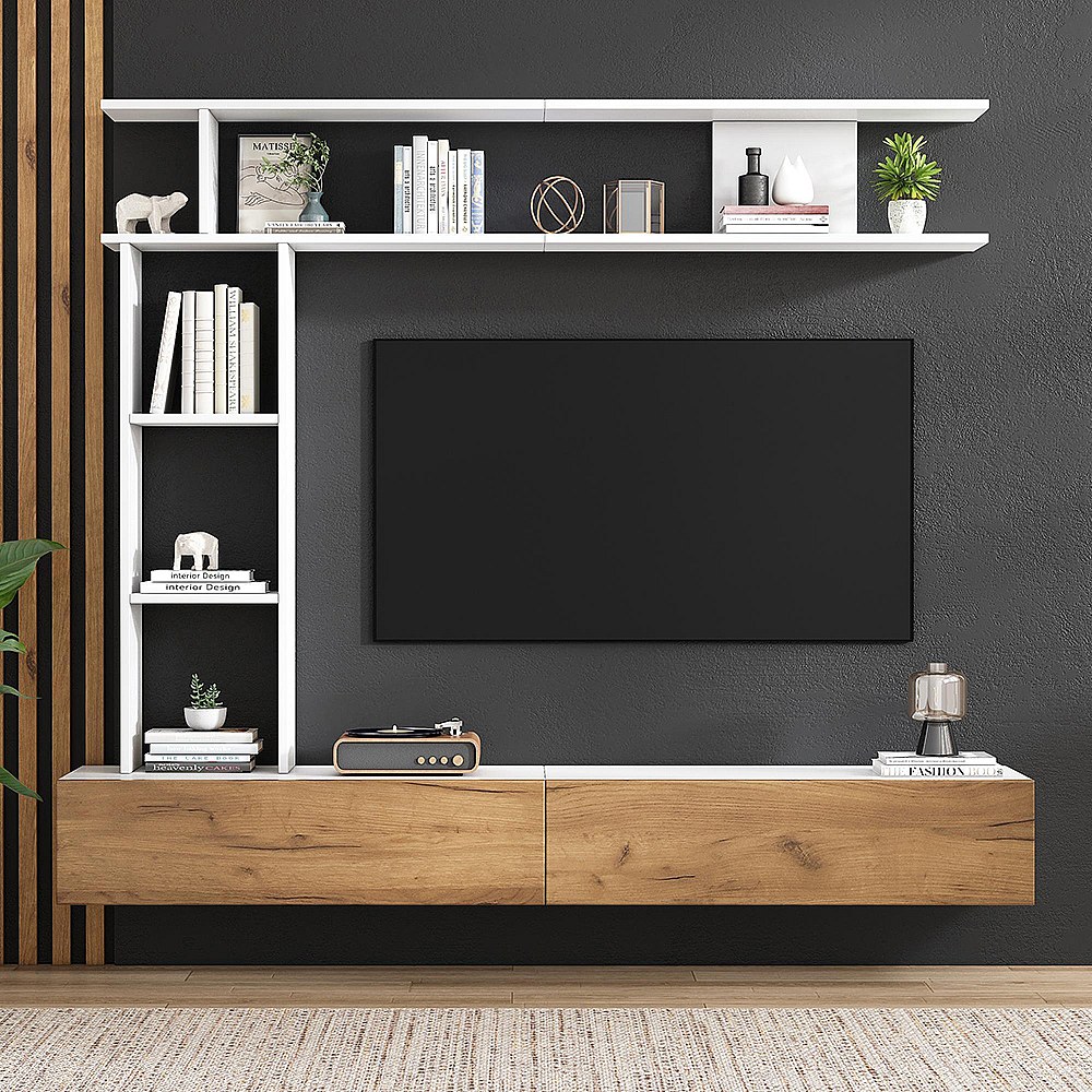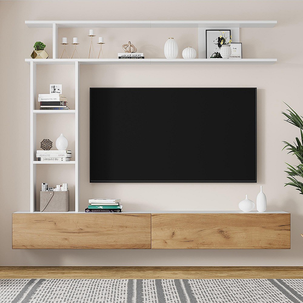 Ensemble meuble TV vitrines meuble multimédia TV étagère pose suspendu TV 80 pouces blanc bois salon