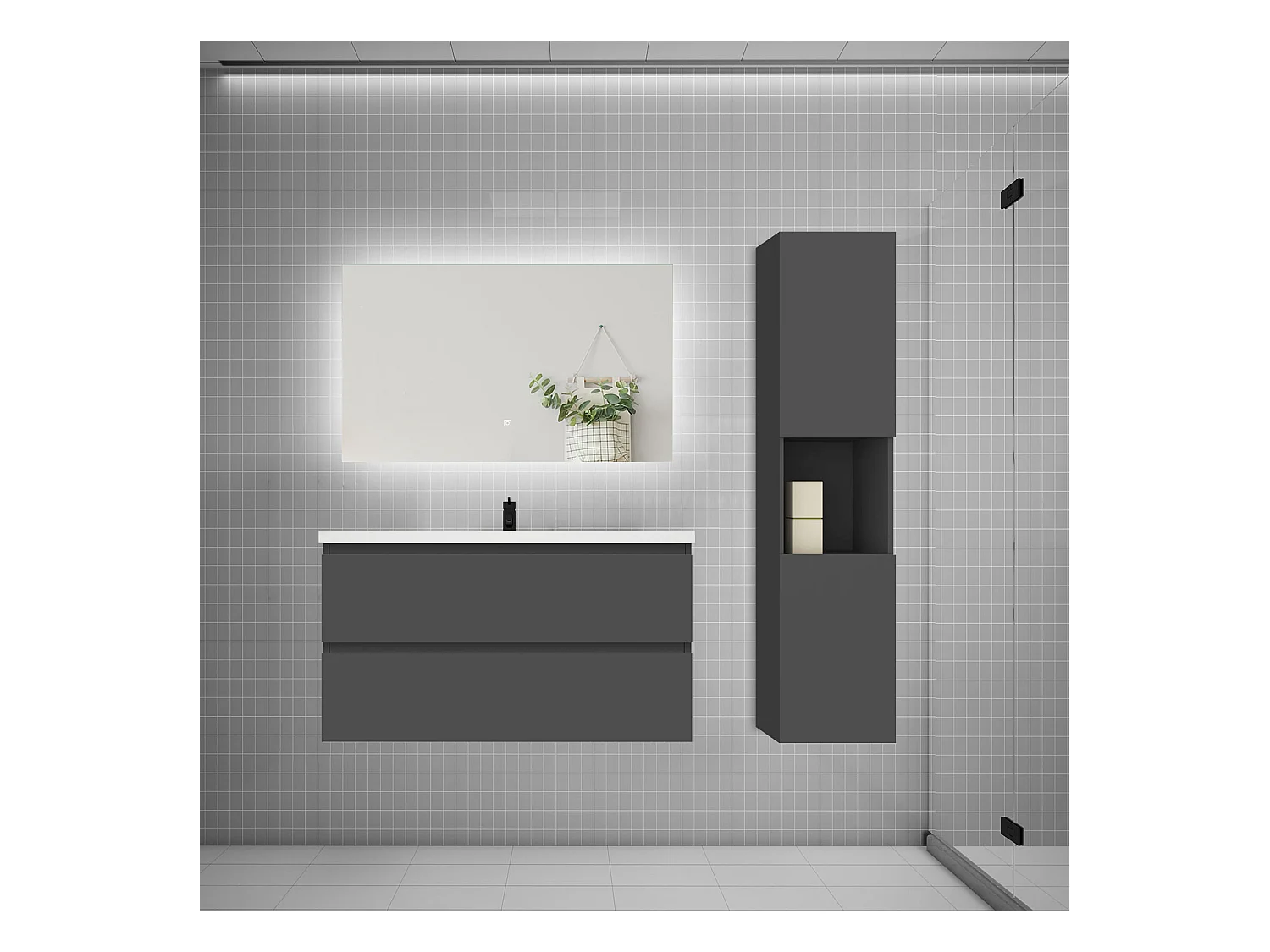 Ensemble meuble vasque 100cm 2 tiroirs + lavabo + colonne + miroir,anthracite