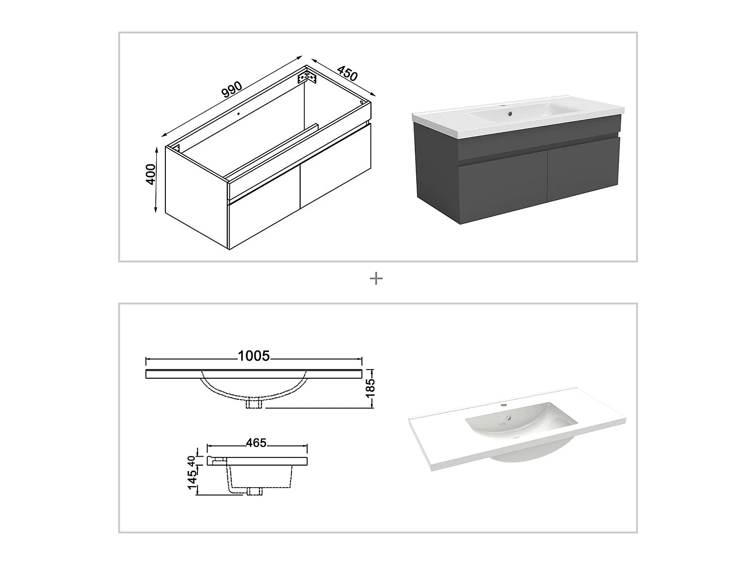 Ensemble meuble vasque 100cm + colonne de rangement + miroir lumineux Anthracite