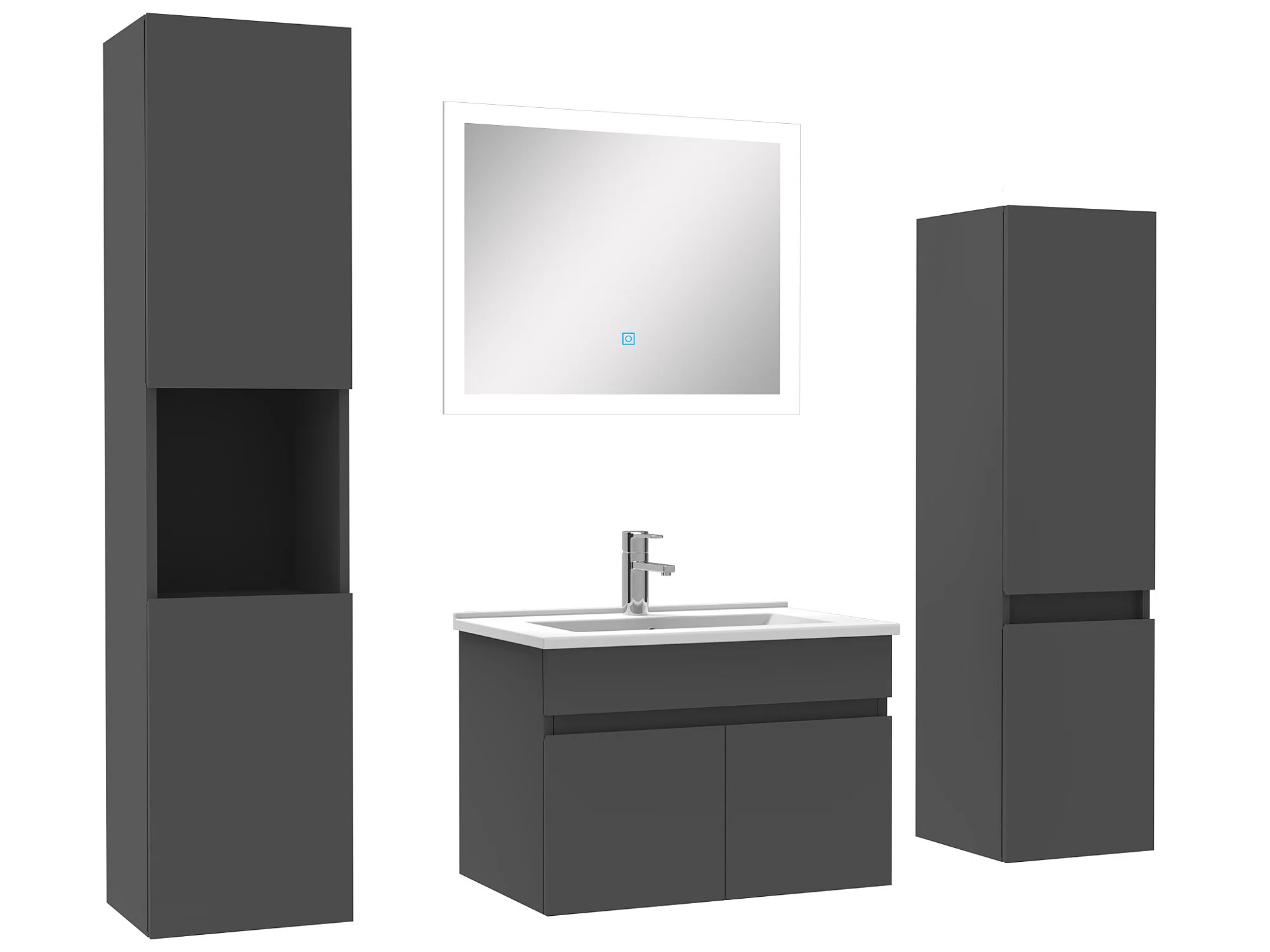 Ensemble meuble vasque 60cm + colonne de rangement + miroir lumineux Anthracite