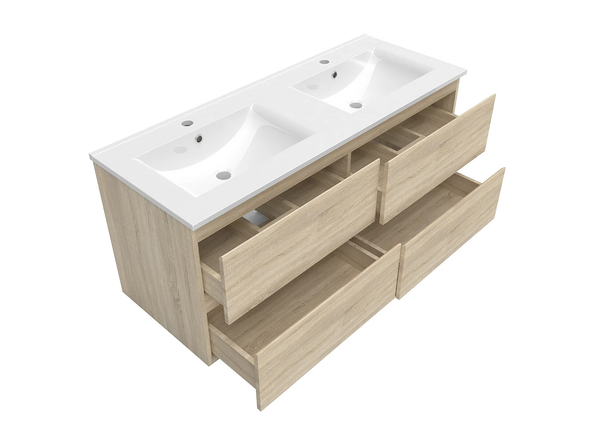 Ensemble meuble vasque L.120cm 2 tiroirs + lavabo + colonne + miroir rond 60cm,chêne