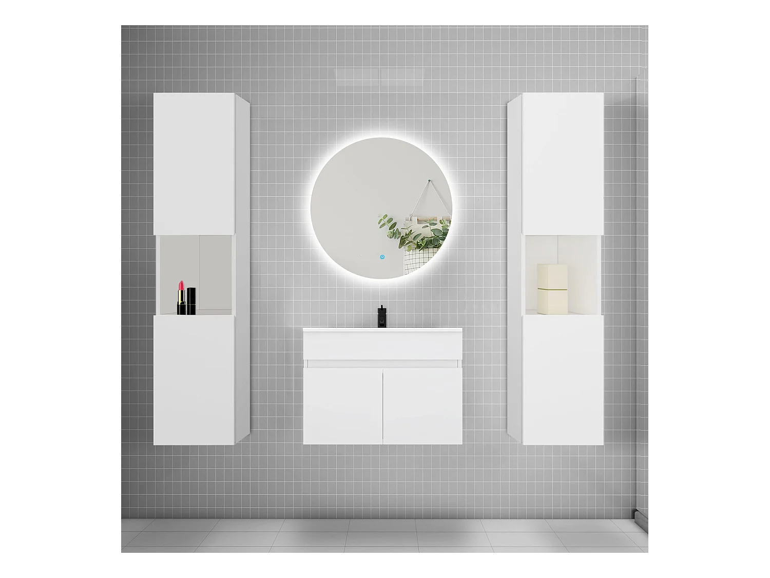 Ensemble meuble vasque L.60cm lavabo + colonne + LED miroir rond 60cm,blanc