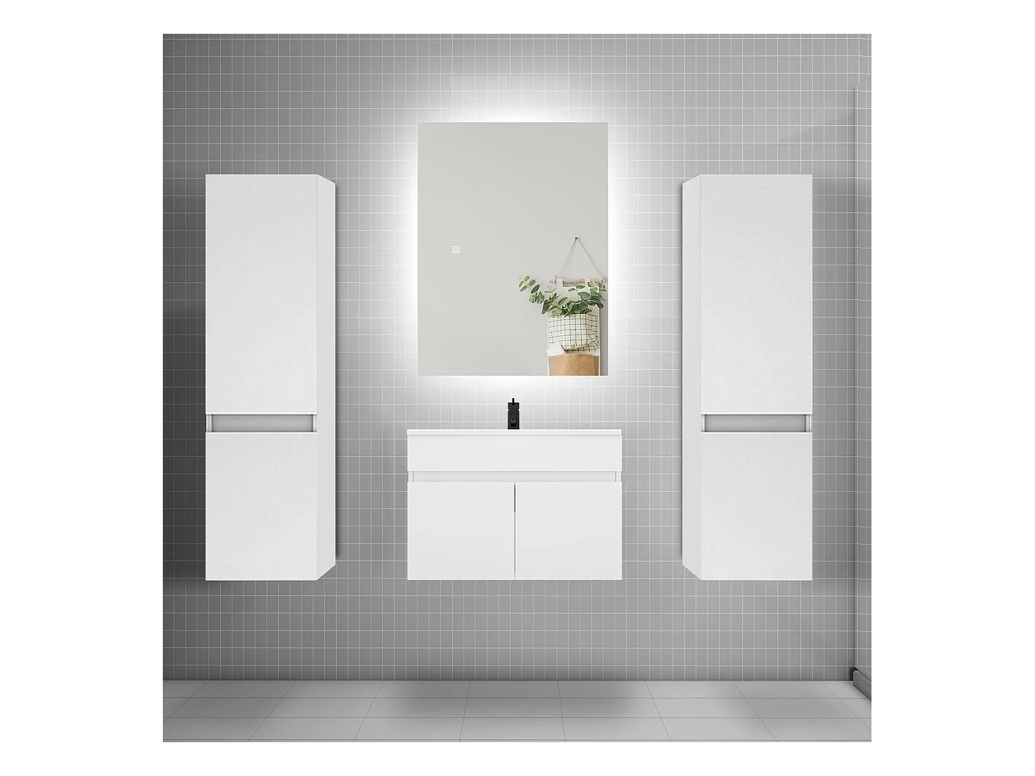 Ensemble meuble vasque L.60cm lavabo + colonne + miroir 60cm,blanc