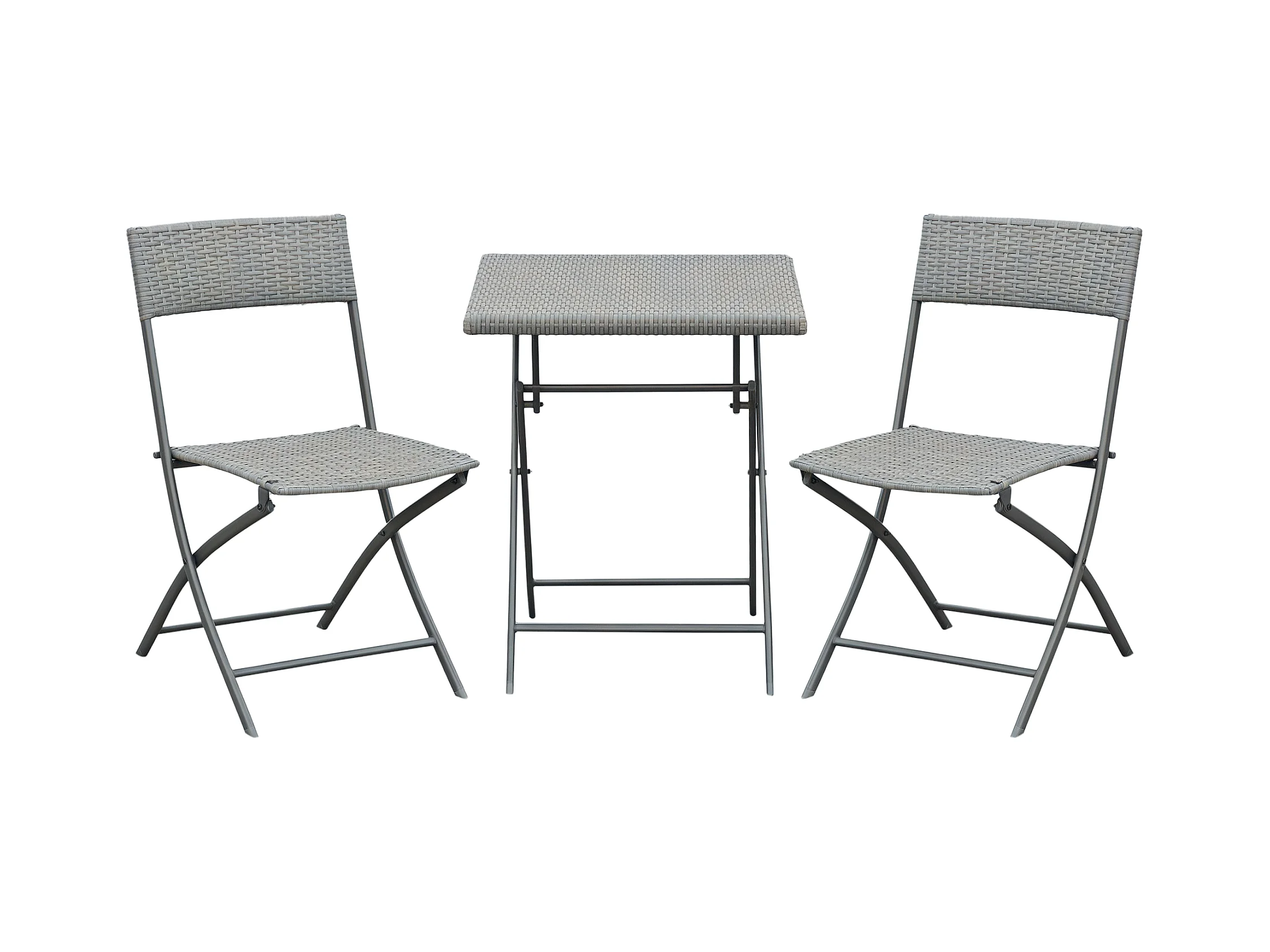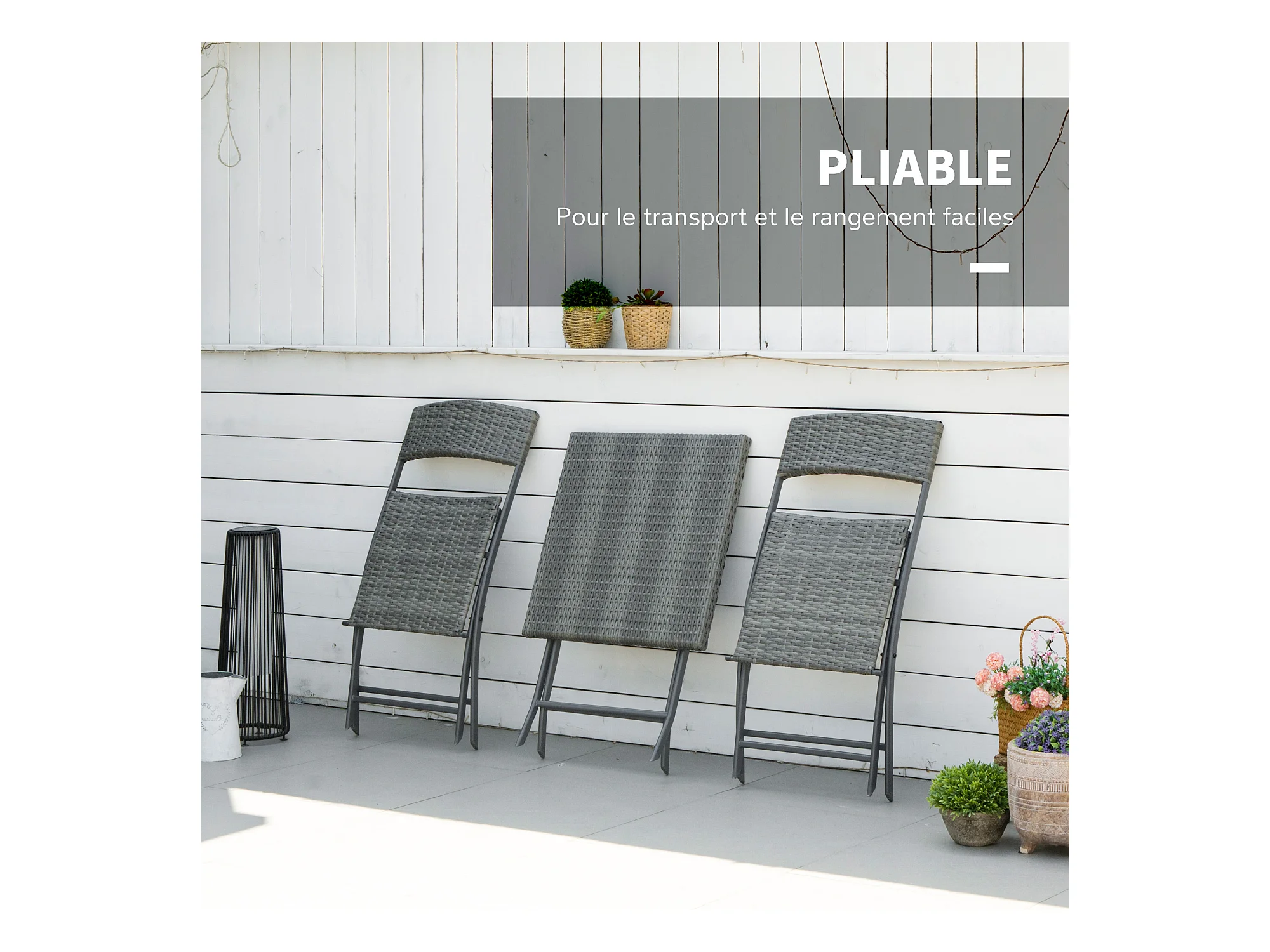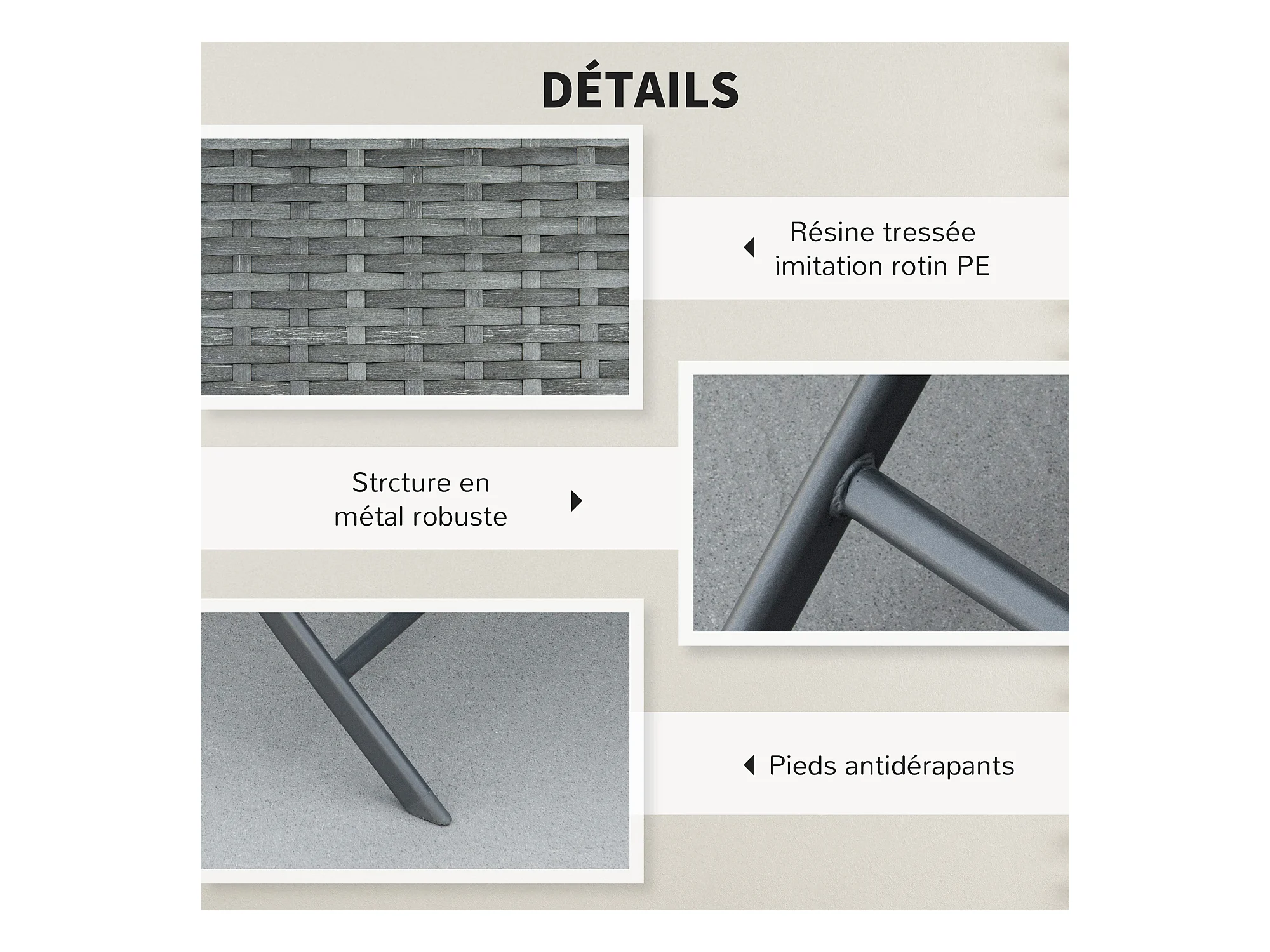 Ensemble meubles de jardin design table carré et chaises pliables résine tressée imitation rotin gris