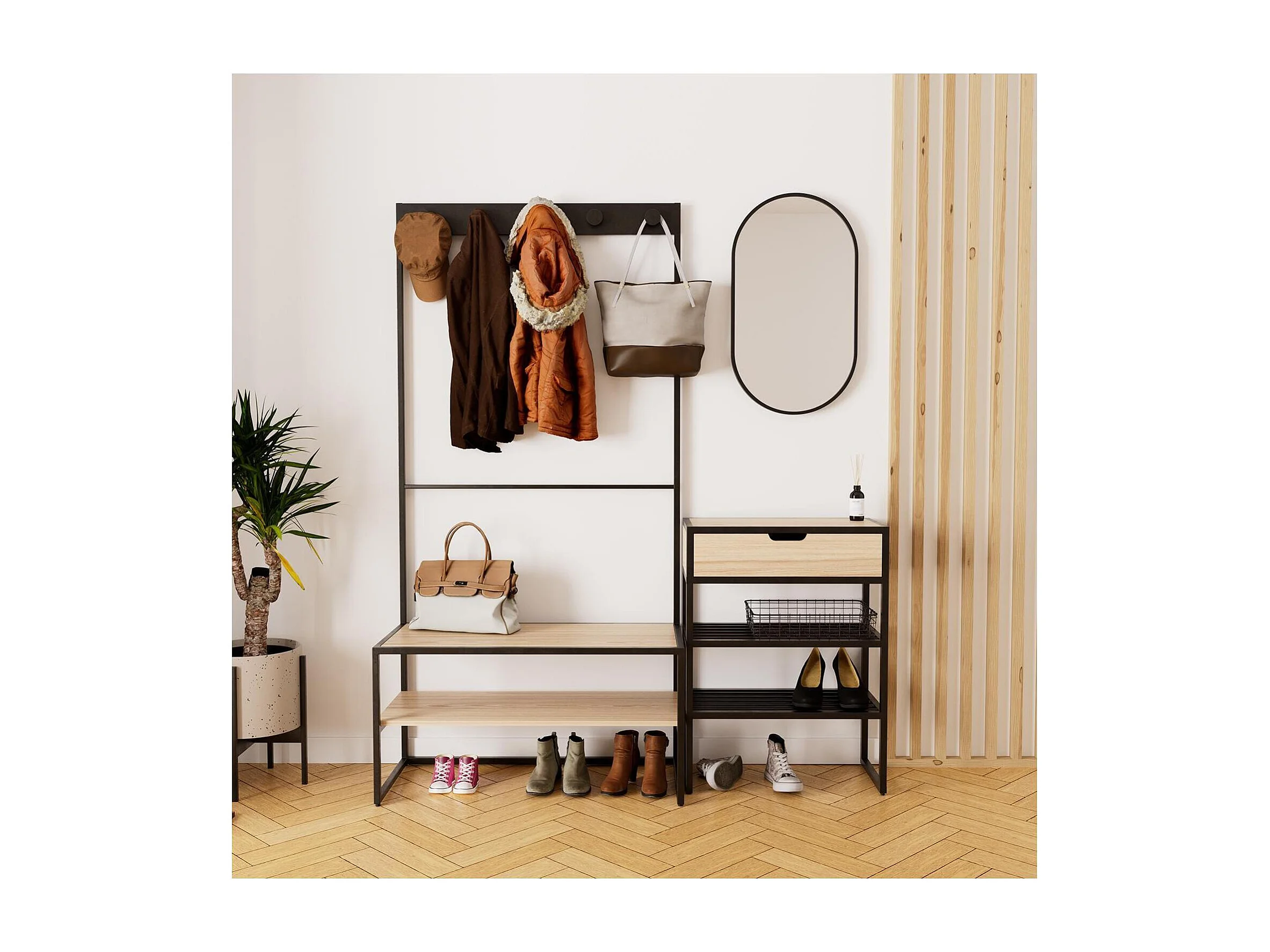 Ensemble meubles d'entrée console, portant et miroir bois et métal
